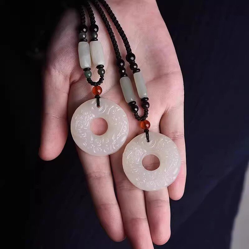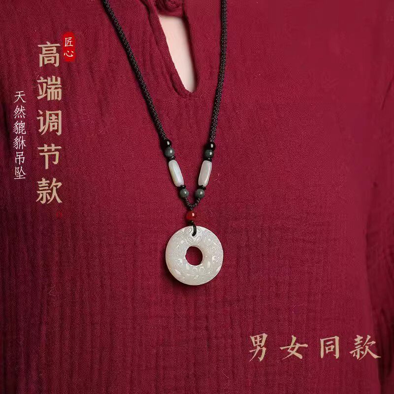 天然玉石平安扣吊坠女本命年礼物白玉貔貅挂件项链男玉坠玉佩礼物