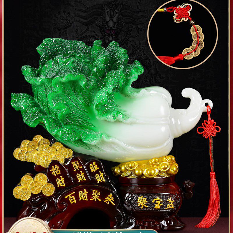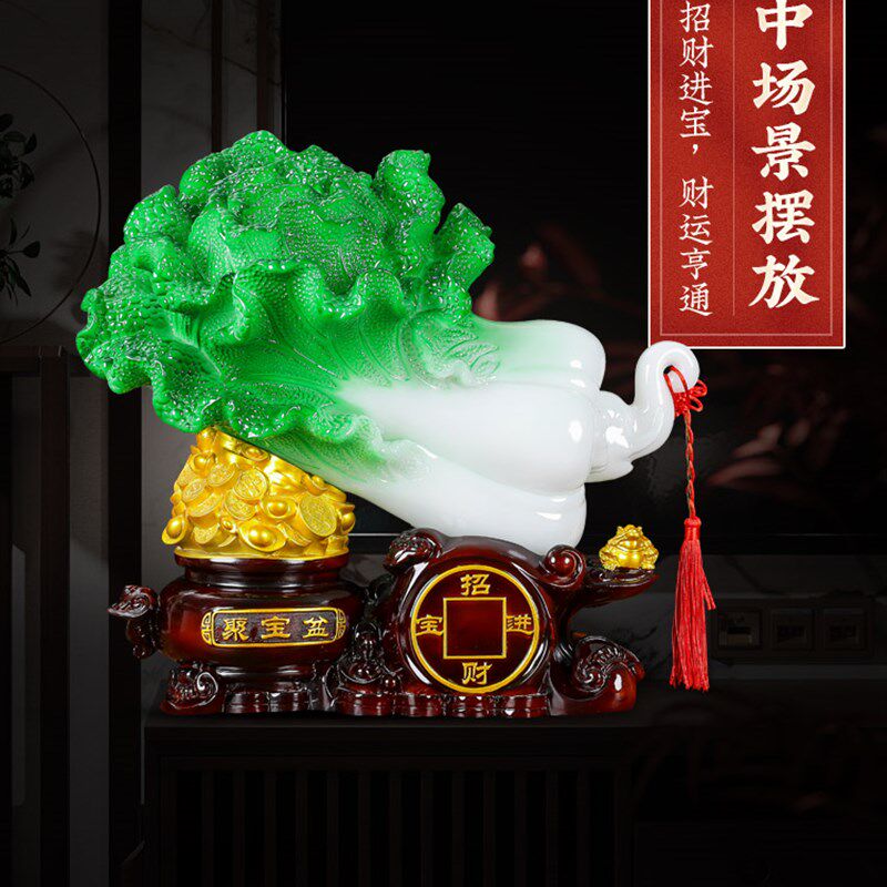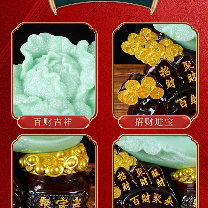 聚宝盆招财玉白菜摆件客厅办公室装饰店铺开业礼品乔迁新居送朋友