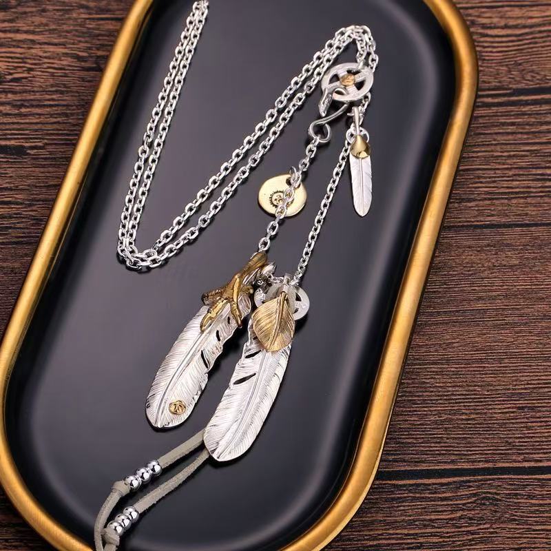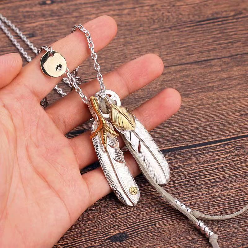 欧美手工银饰潮牌项链ins男女高桥吾郎羽毛925印第安流行时尚情侣