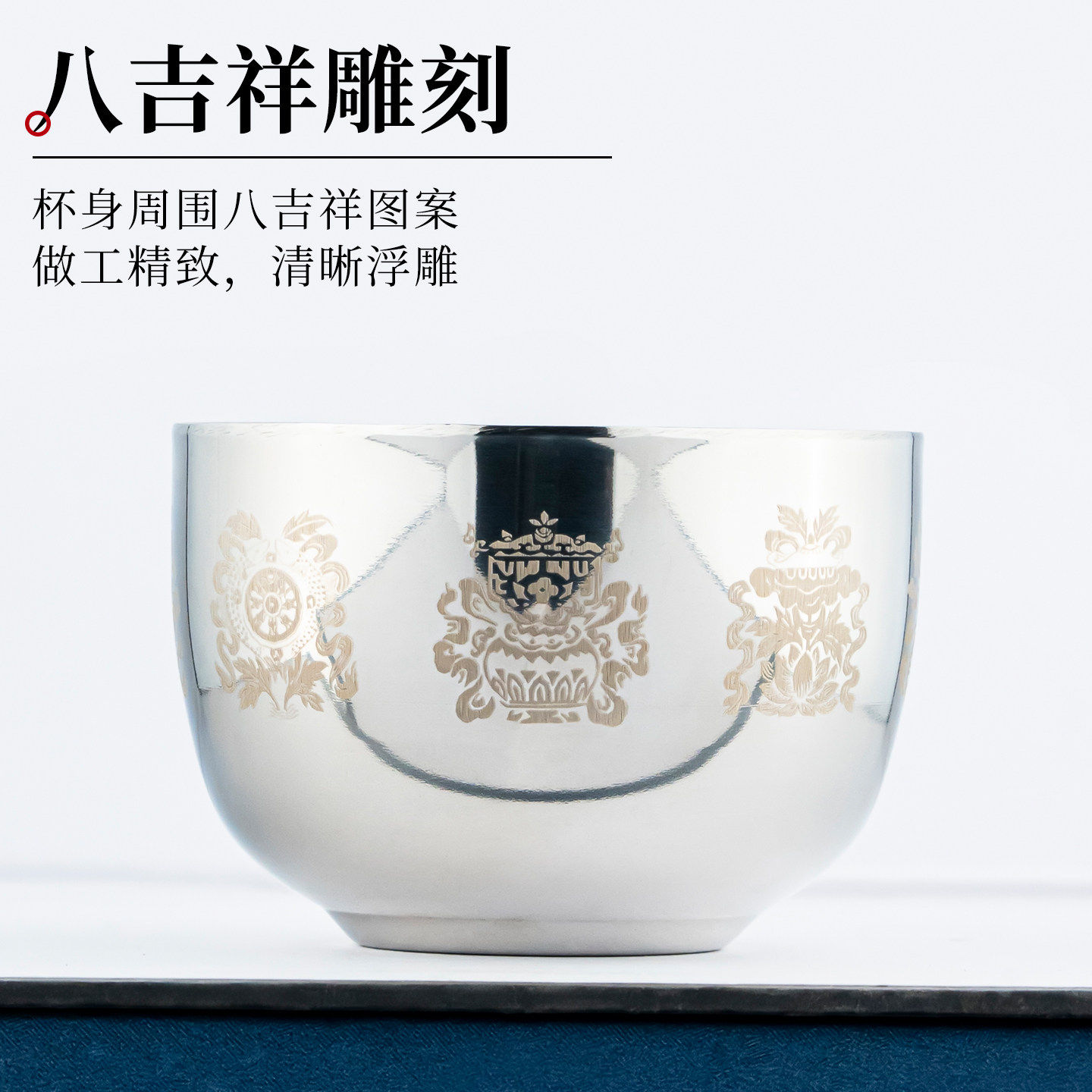 藏式八吉祥心经供水杯不锈钢供水碗佛台家用观音财神摆件佛龛供品
