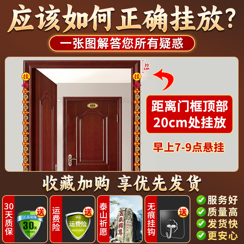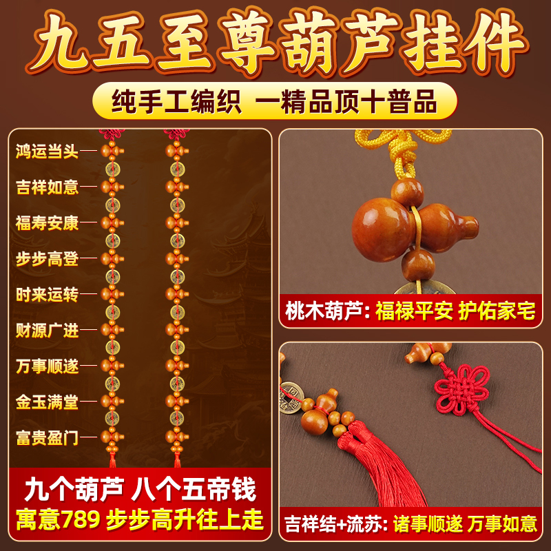真桃木葫芦挂件五帝钱入户门对门帘铜钱葫芦串中国结镇九五至尊宅