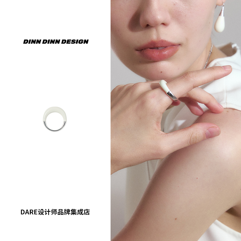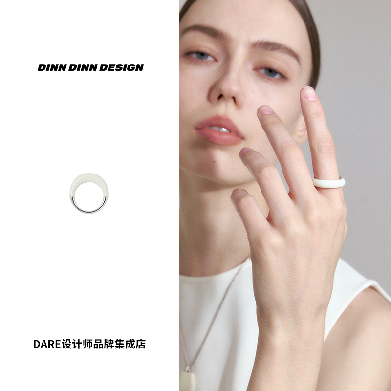 Dare买手店 DINN DINN DESIGN 白色珐琅拼接金属戒指个性时尚百搭