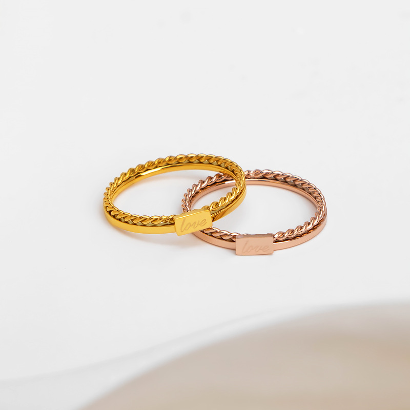 新潮ins麻花双拼英文刻字Love牌戒指钛钢指环情侣闺蜜生日礼物女