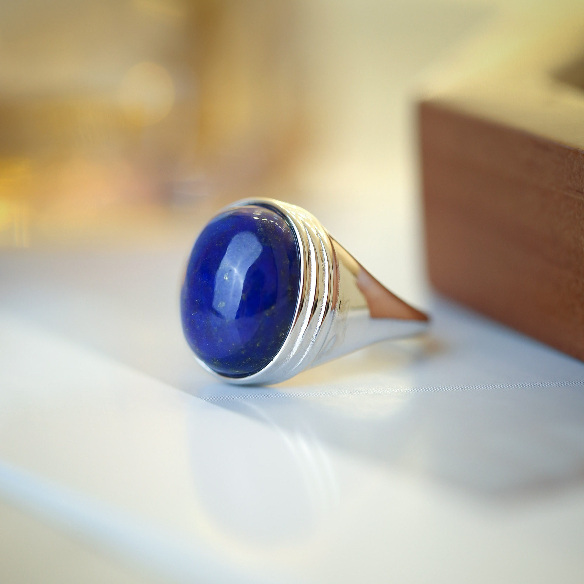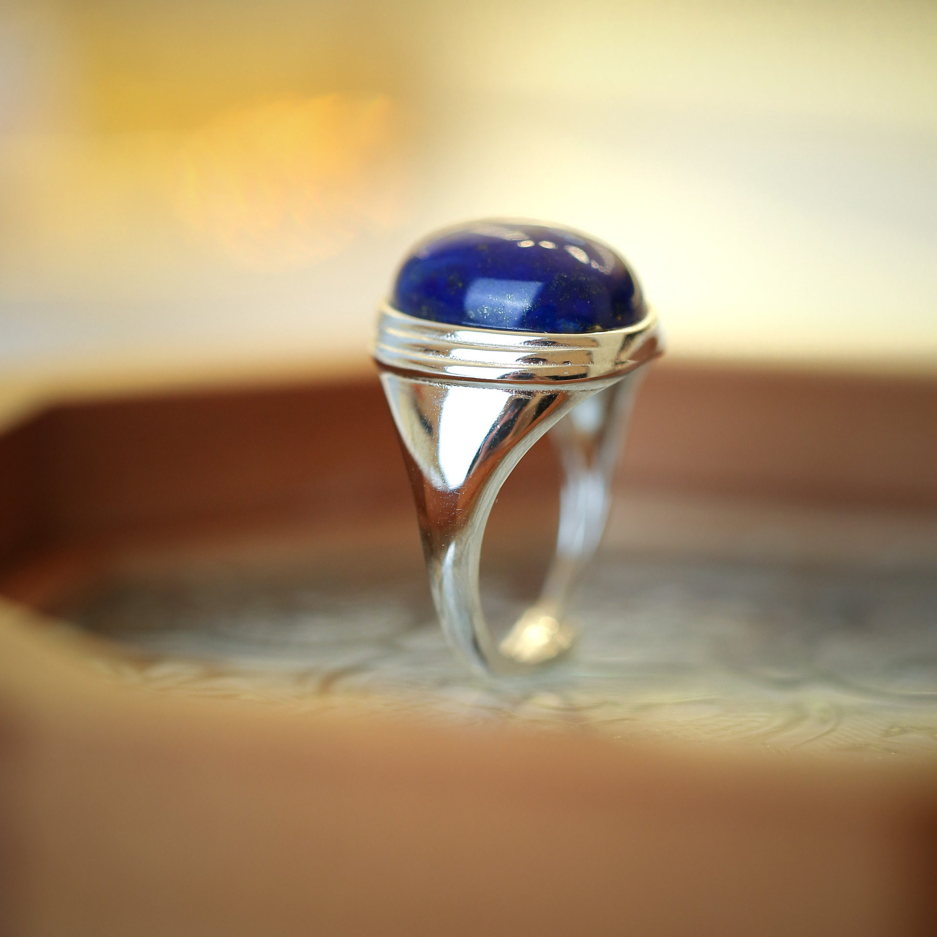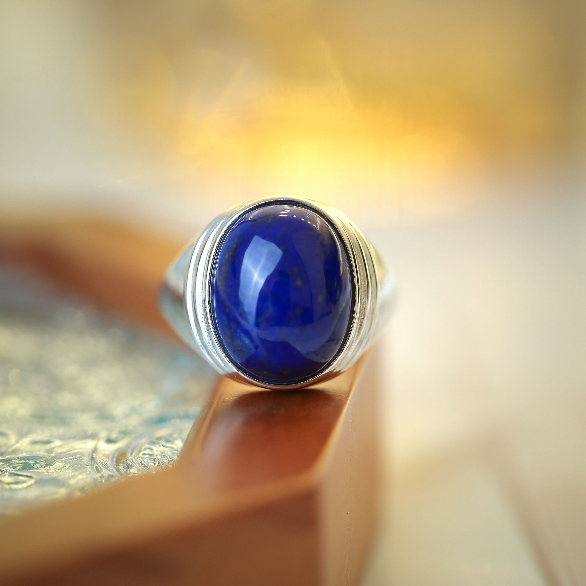 御臻珠宝|青金石|S925银|大蛋面戒指夏日银色蓝色简约气质轻奢