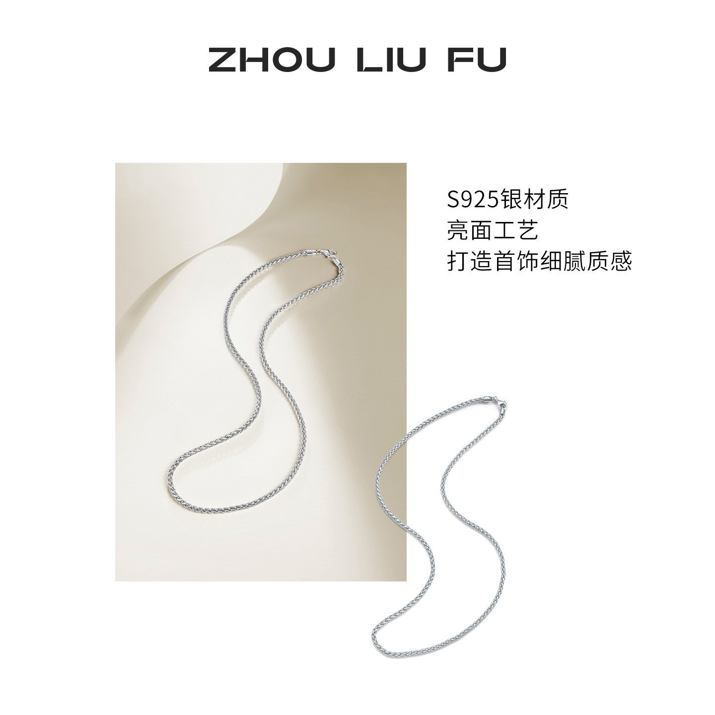 周六福项链男潮嘻哈S925银素链肖邦链简约时尚节日礼物送男友