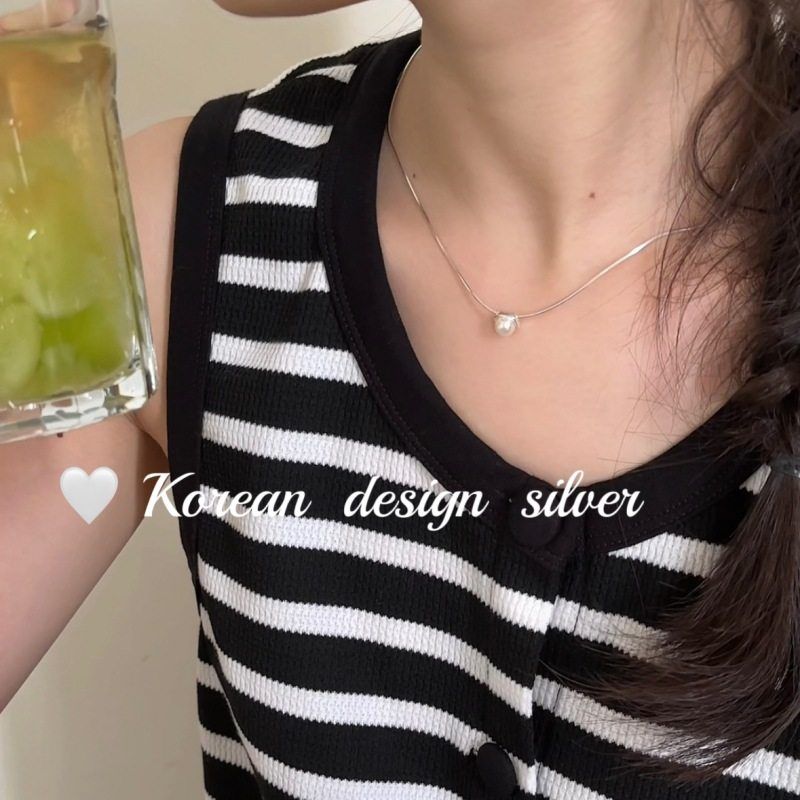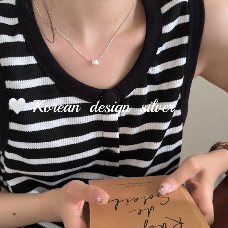 鑫葆康设计感链韩国珍珠ins风女方形项链S925纯银迷你小众高级锁