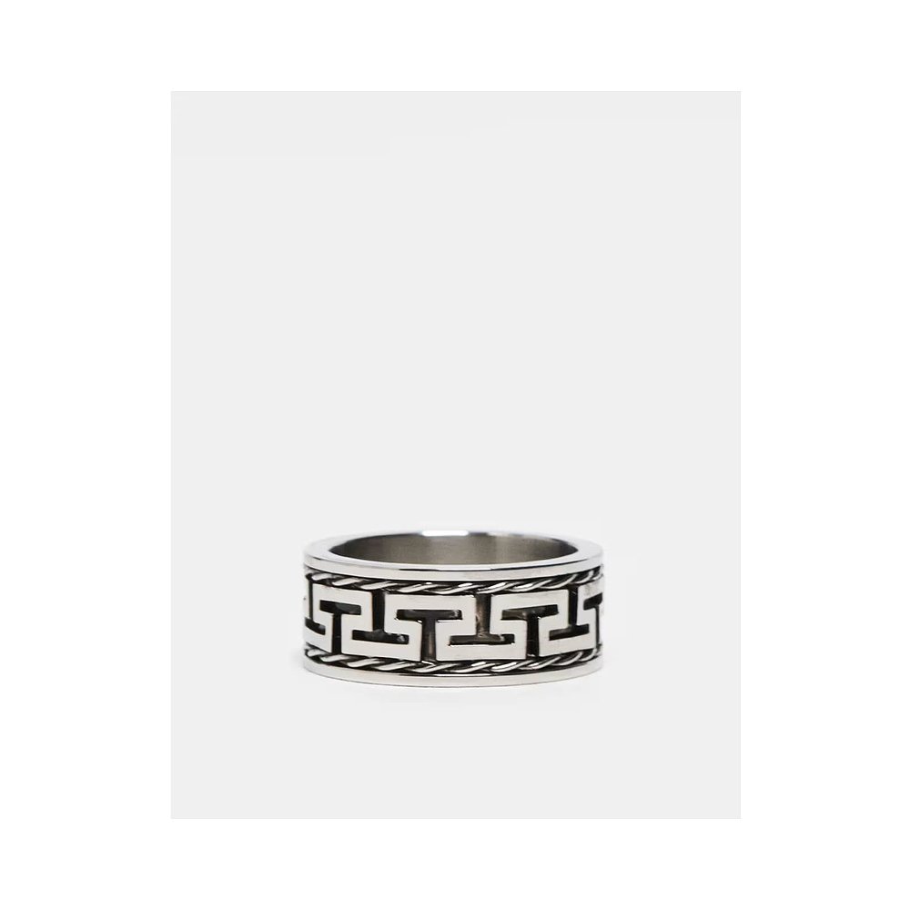 1h可退 潮奢 ASOS 男士 greek 设计防水不锈钢粗框波浪纹戒指(银)
