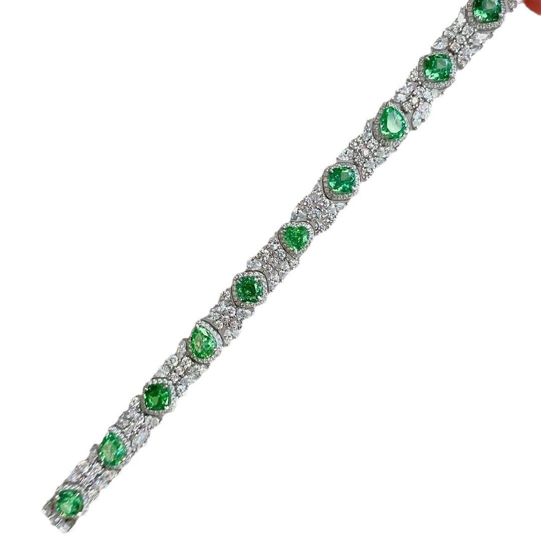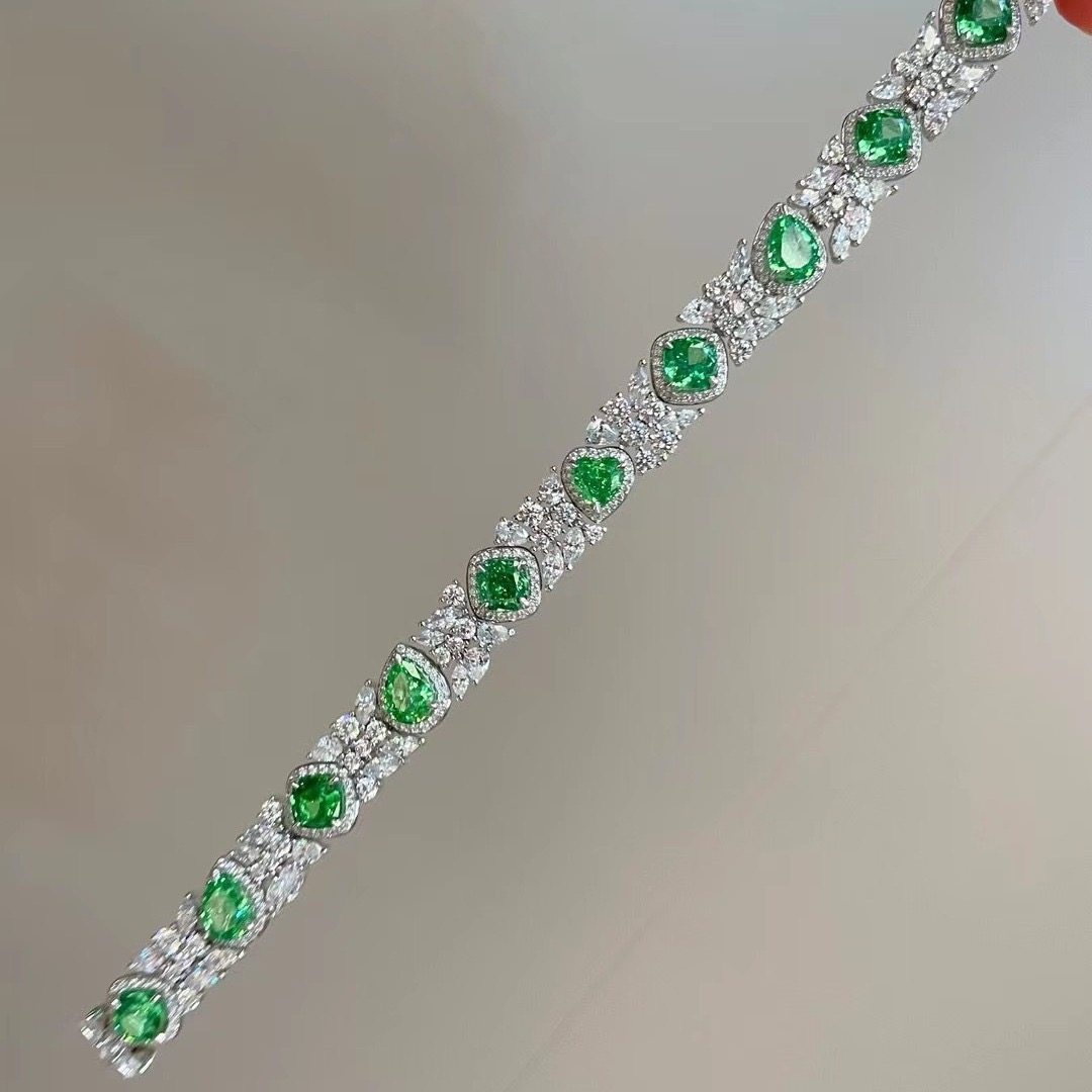 绿色手链925纯银镀金高碳钻培育绿钻手链 俏立