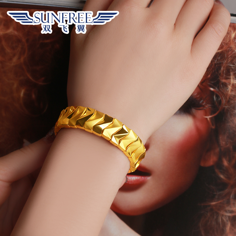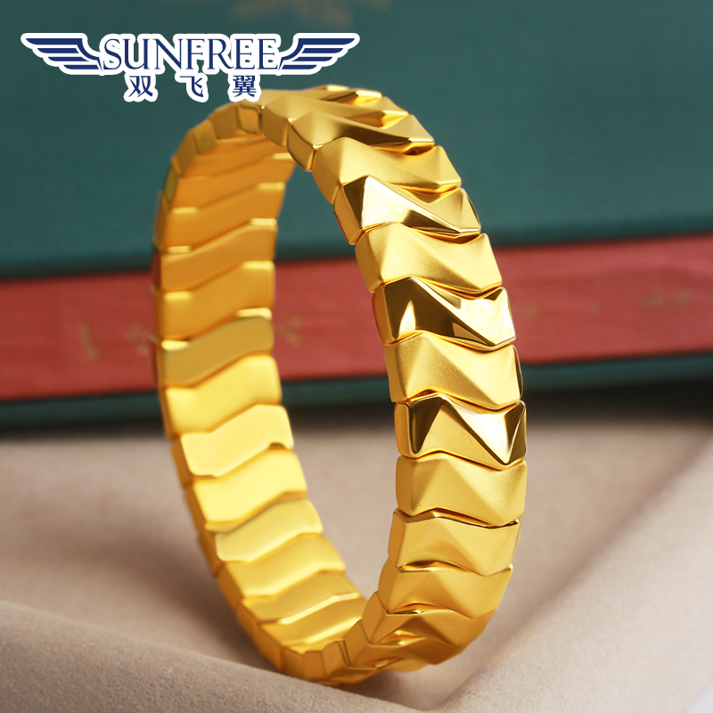 金手镯男女款时尚独特真金足金弹力宽镯子送礼物亮面手链定制手围