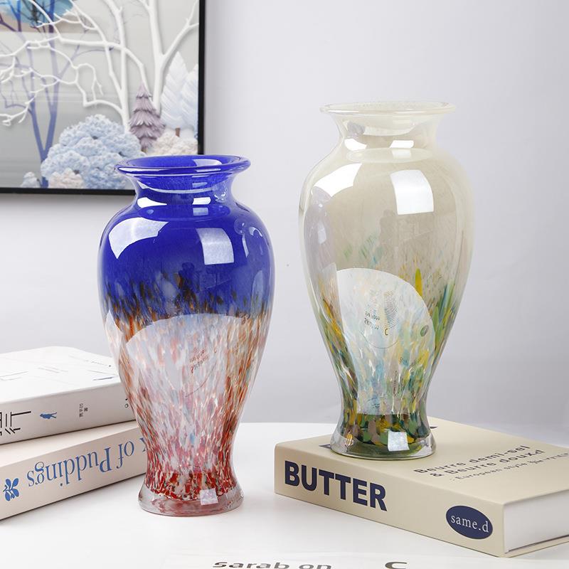 高档新国风实用纯手工琉璃花瓶彩色玻璃水培插花花器家居装饰品