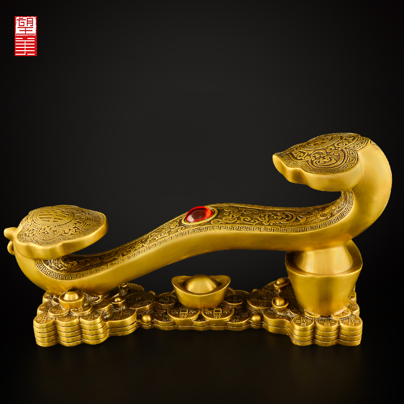 铜如意摆件黄铜事事如意摆件客厅酒柜电视柜乔迁新居装饰礼品大号