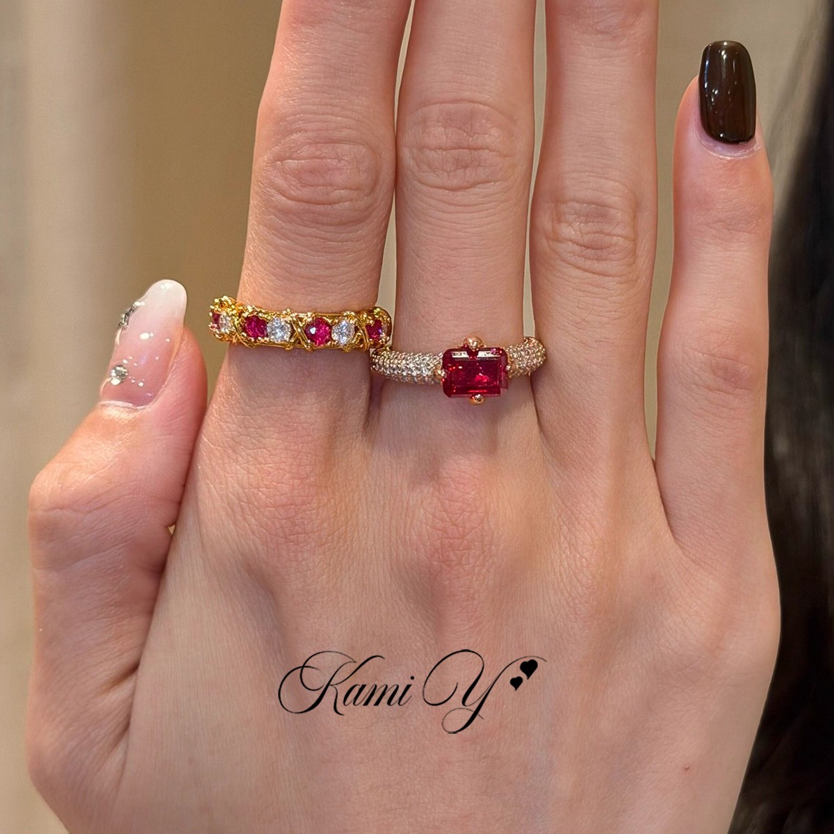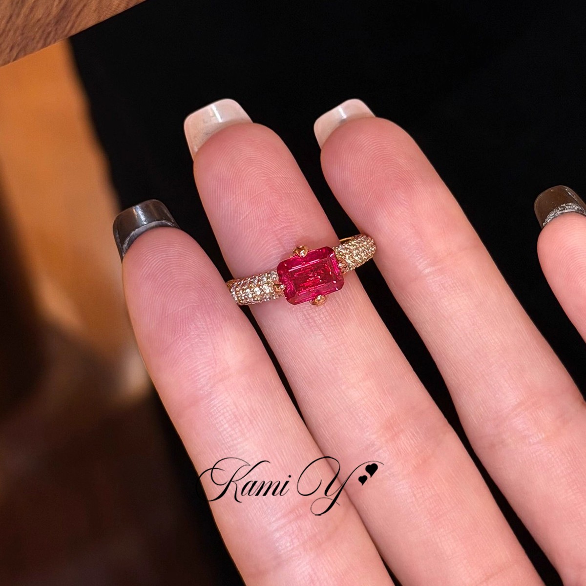 满钻气质红色宝石戒指女轻奢小众高级复古食指戒2025新款爆款指环