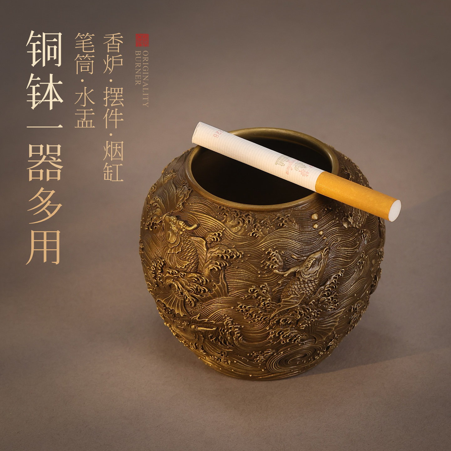缸式香炉纯铜家用烟灰缸聚宝盆玄关装饰品家居好物客厅桌面小摆件