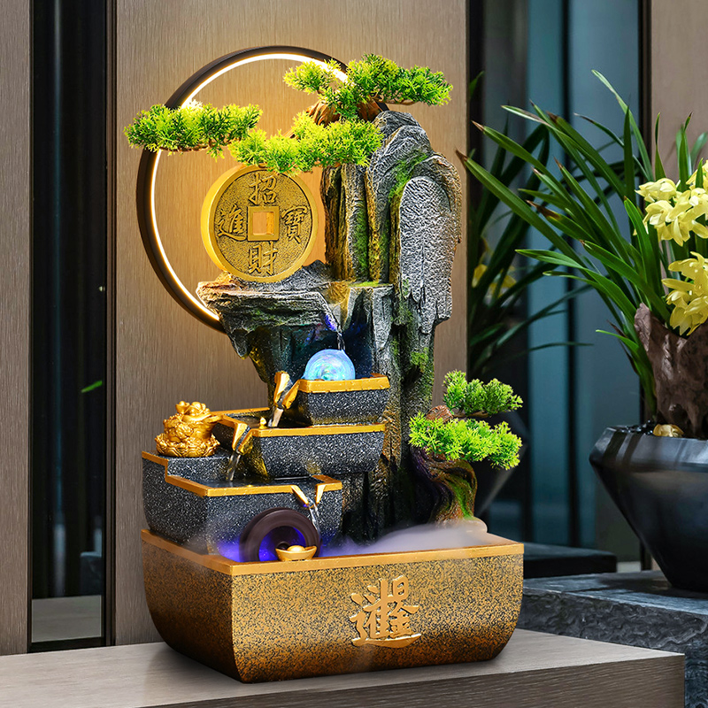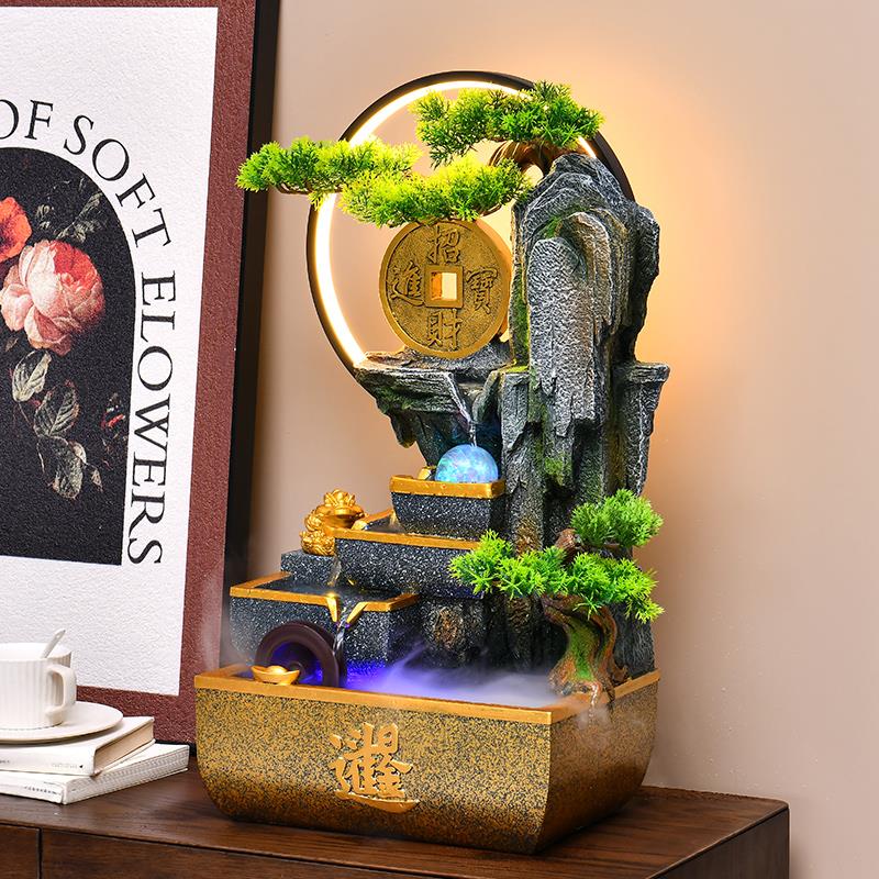 假山流水生财摆件循环水景办公室客厅玄关风水轮桌面开 业乔迁送