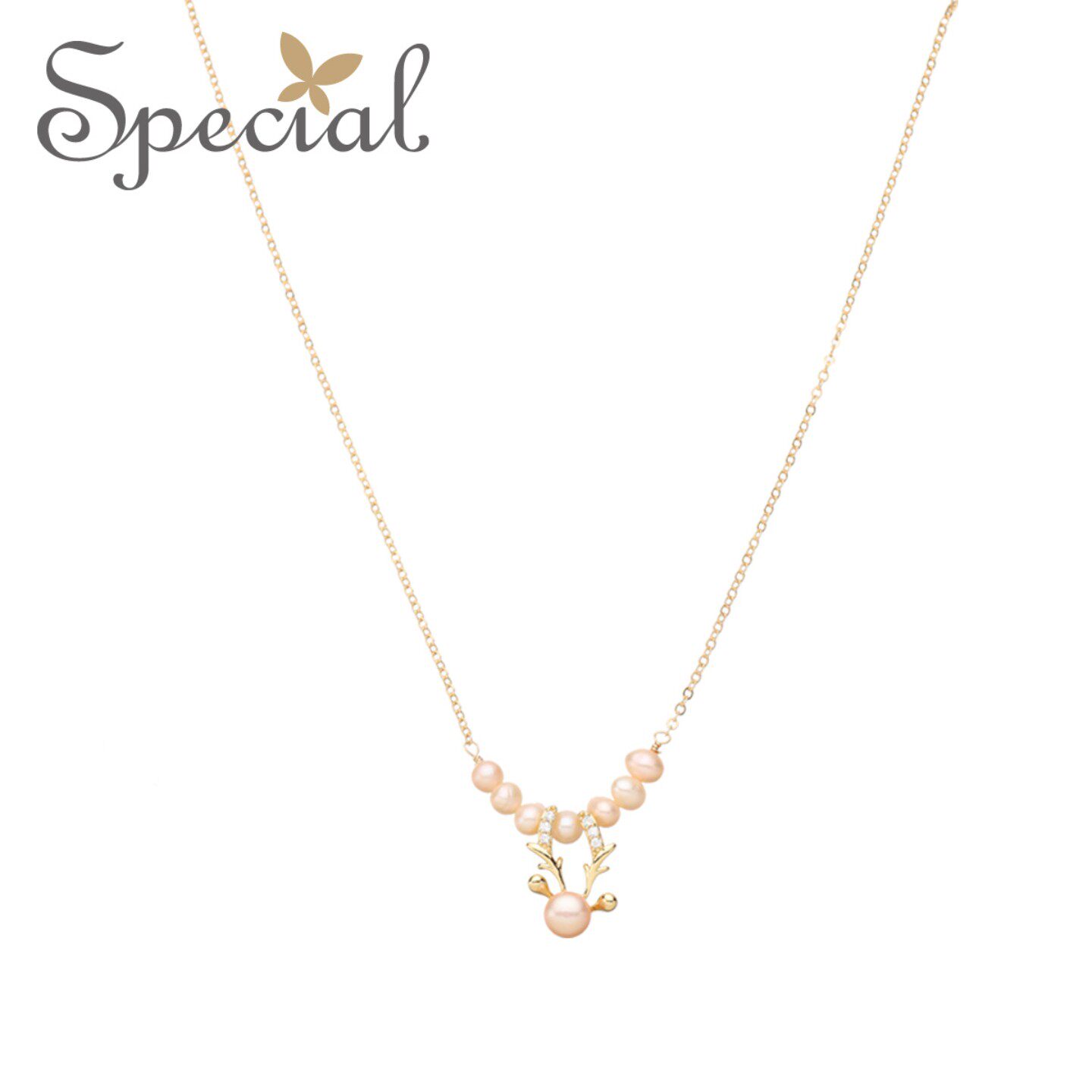 SPECIAL圣诞小鹿粉色淡水珍珠项链颈链送女友精致礼物2025年新款