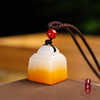 新疆金丝玉印章吊坠定制玉石篆刻素面印章篆刻姓名私章免费刻字