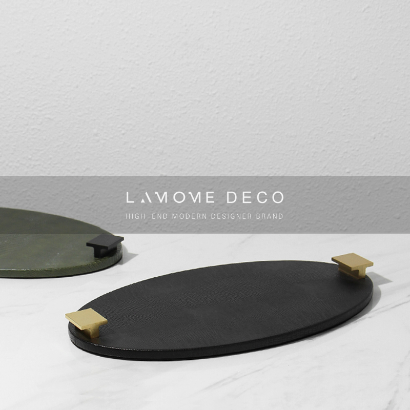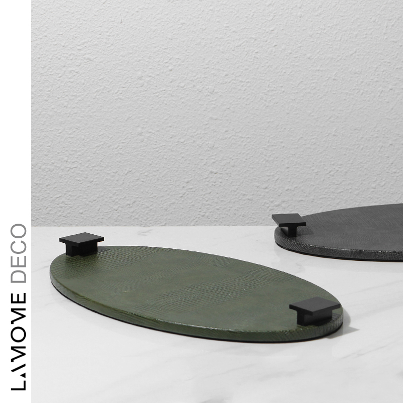 简约绿色高端皮质肌n理纹收纳托盘摆件客厅茶几餐桌桌面装饰品