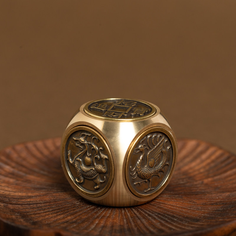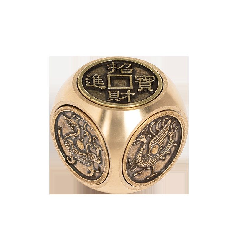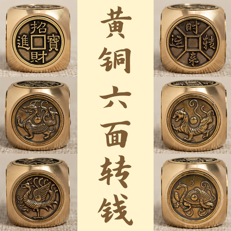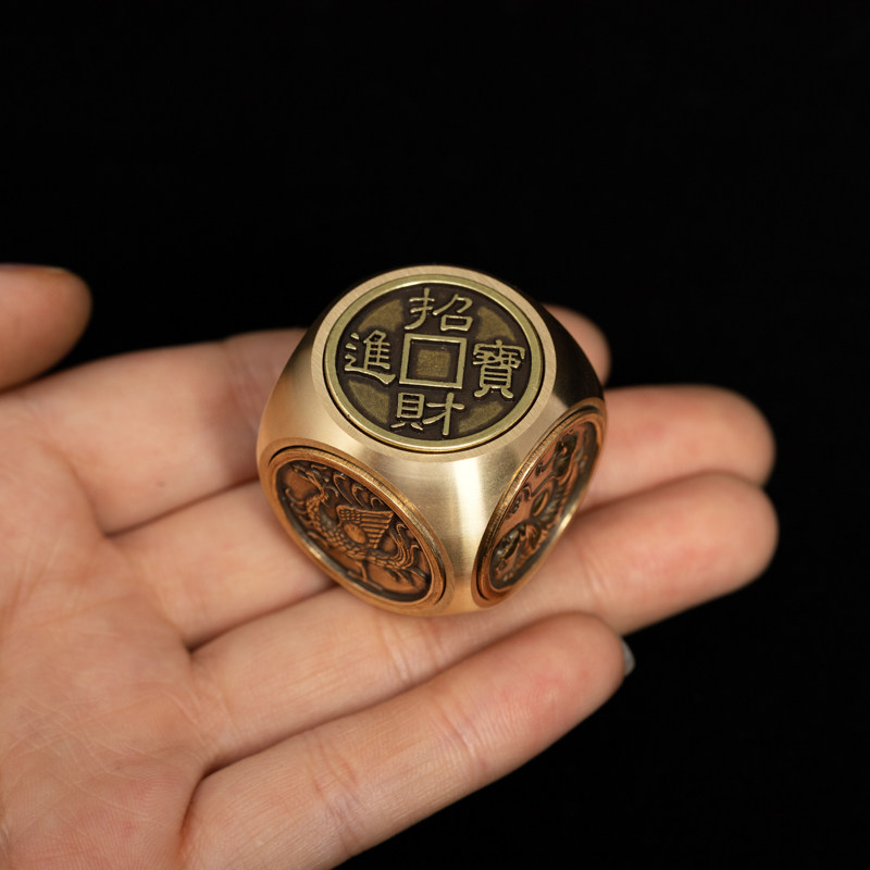 速发纯黄铜招财赚钱手把件六面转男压旋转小摆件时来运转解士随身