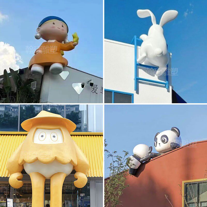 定制玻璃钢卡通门头雕塑店铺爬z墙玩偶立体卡通动物宠物网红摆件