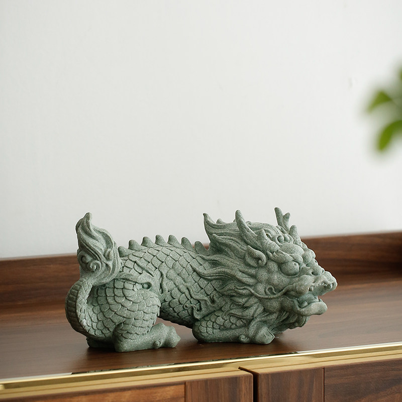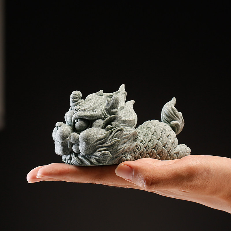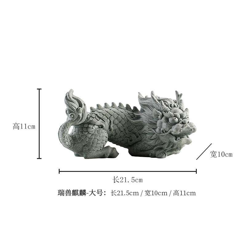 国风瑞兽麒麟动物摆件青砂石微景观鱼缸造景创意店铺开业柜台送礼
