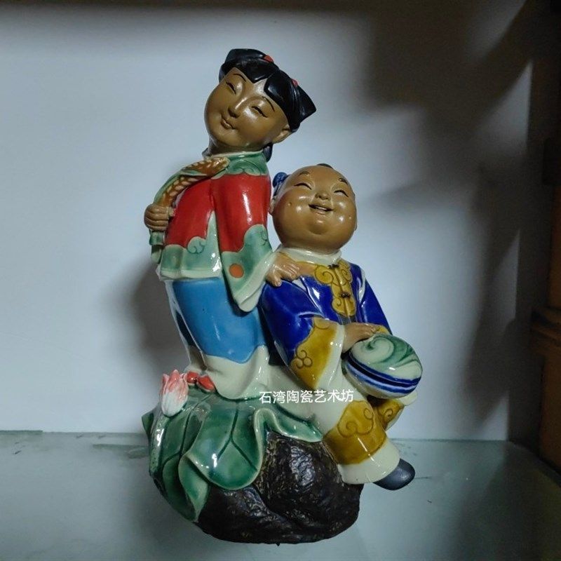石湾公仔陶瓷和合童子手工摆件客厅房间店铺开业入伙金童运财童子
