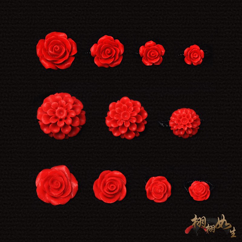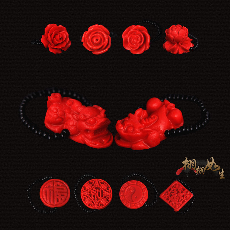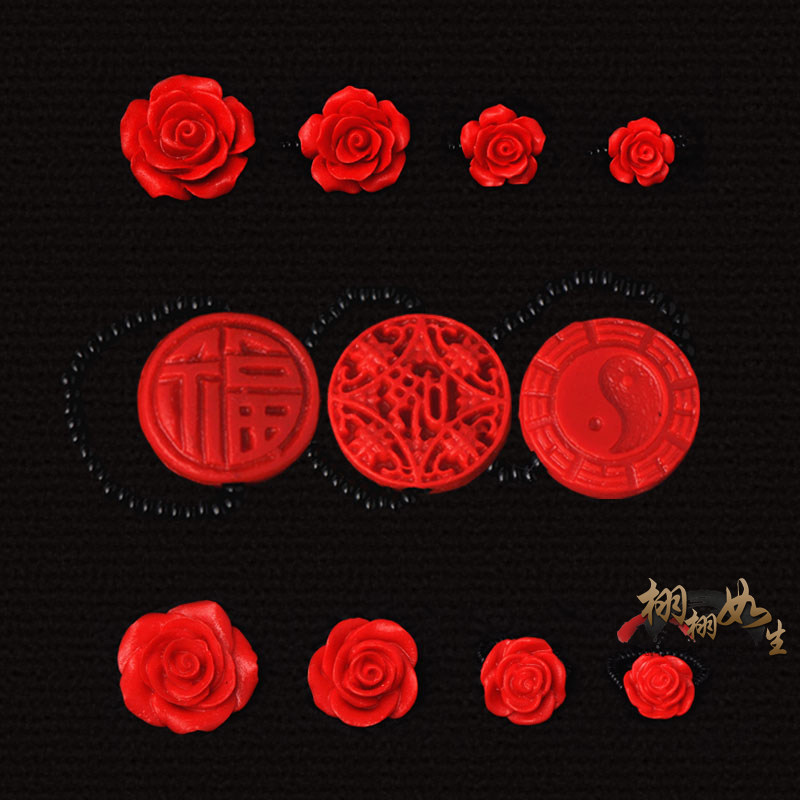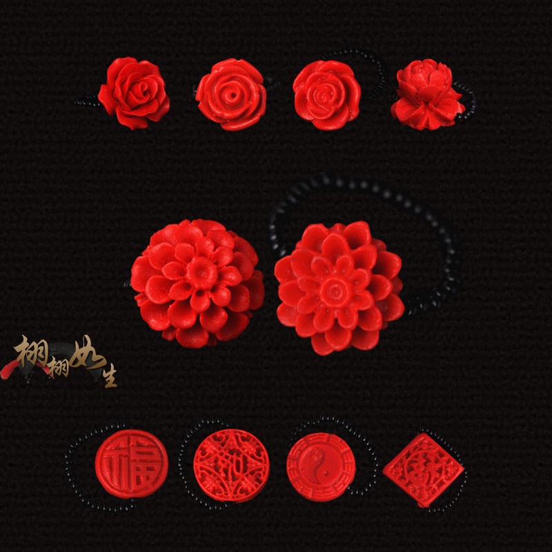 正品朱砂漆雕中国吉祥红色玫瑰花女式弹力线戒指指环新娘婚庆饰品
