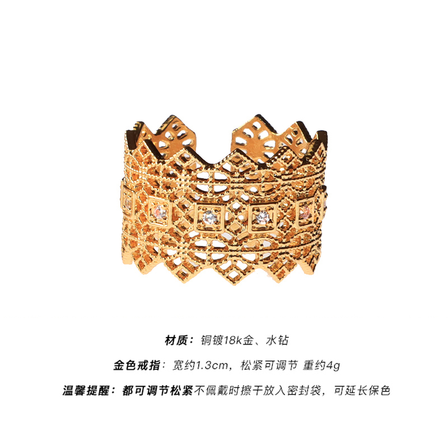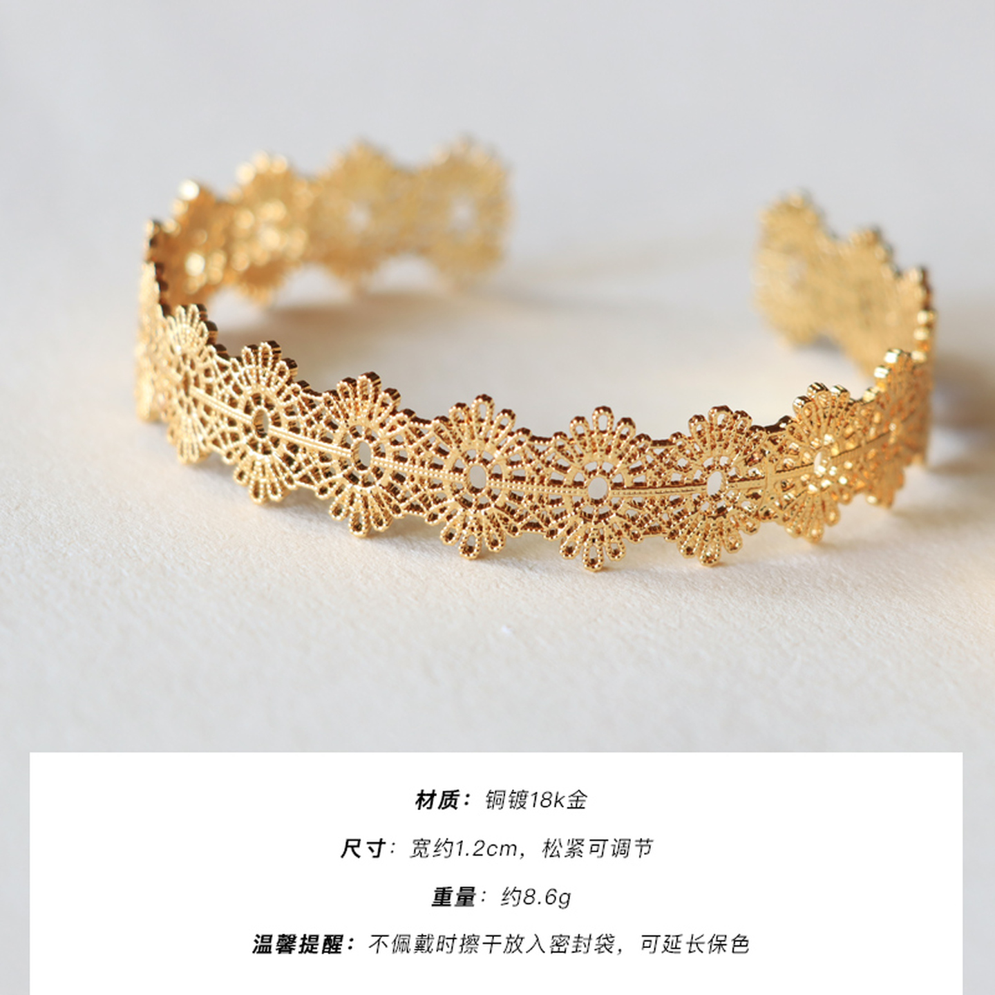 老钱风高端法式开口金色手镯戒指古法镯子手饰轻奢气质小众高级感