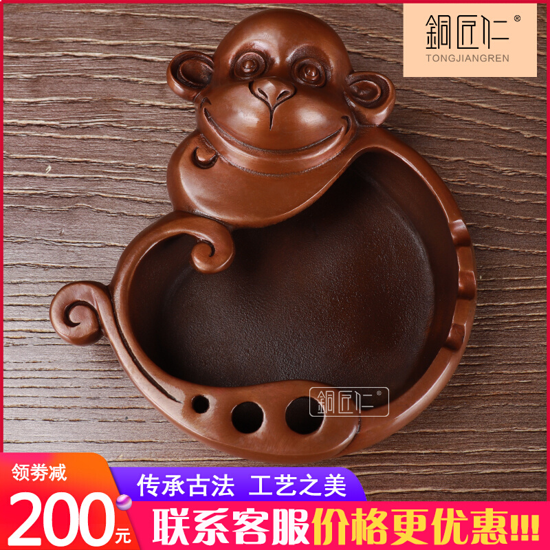 铜匠仁紫铜卷尾猴烟缸摆件纯铜生肖猴摆设创意办公桌茶几商务礼i.