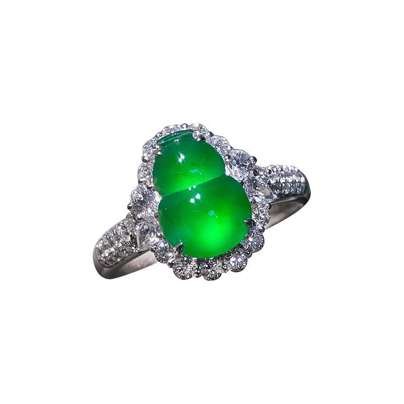 网红开口925纯银镶嵌葫芦戒指女种水好玉髓帝王绿可调节玻璃种款