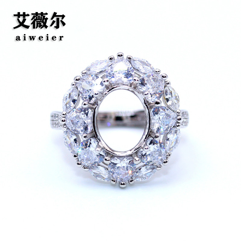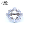 精工S925银戒指空托奢豪华戒托定制代加工宝石镶嵌18k金8*10mm