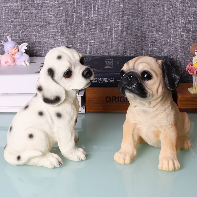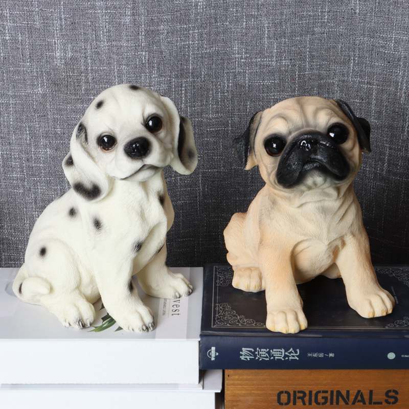 可爱仿真巴哥斑点摆件家居房间客厅动物小狗树脂装饰品宠物犬模型