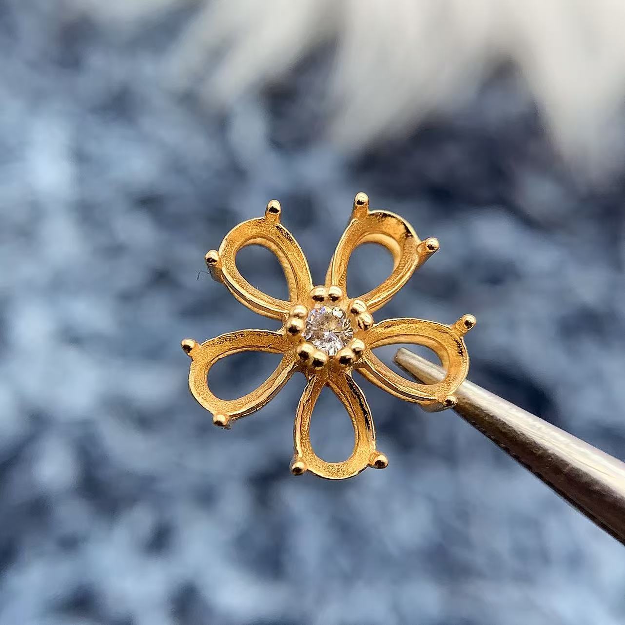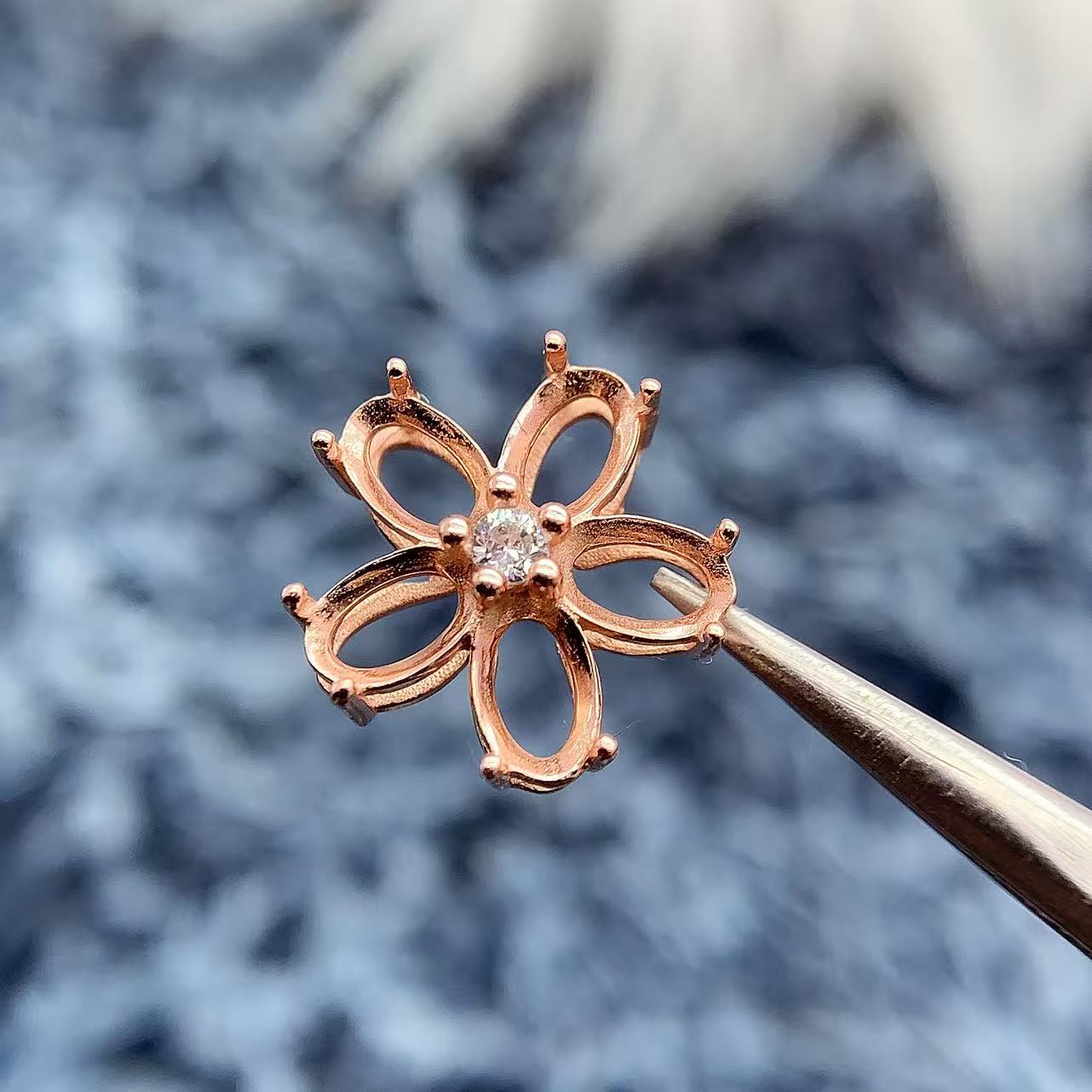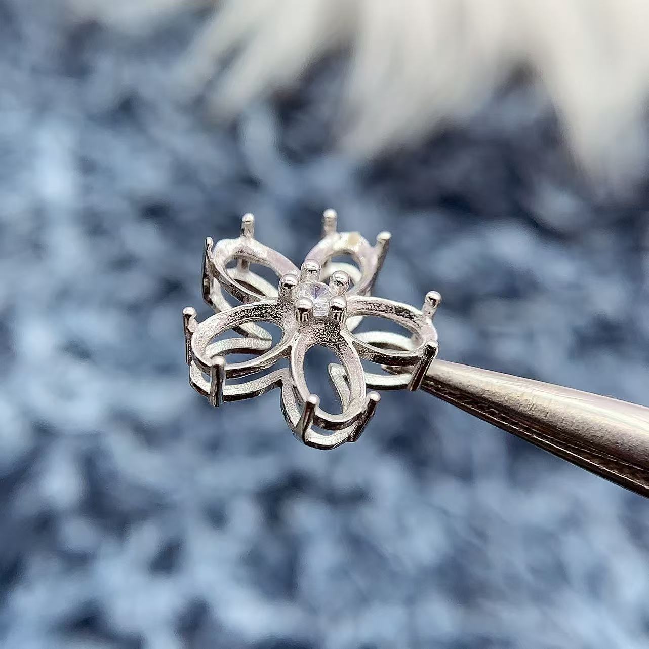 s925纯银吊坠空托水滴形椭圆形4*6mm5粒花路路通魔盒配件穿绳配件