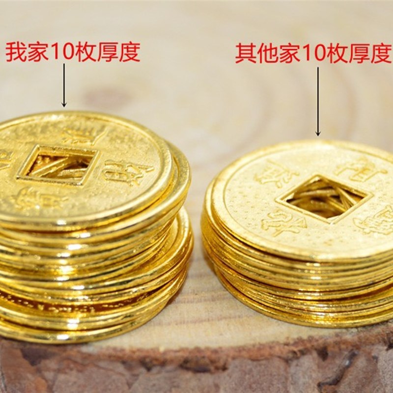 铜钱合金2ecm金色招宝龙凤铜钱装聚宝盆发财树客厅过门石装饰品