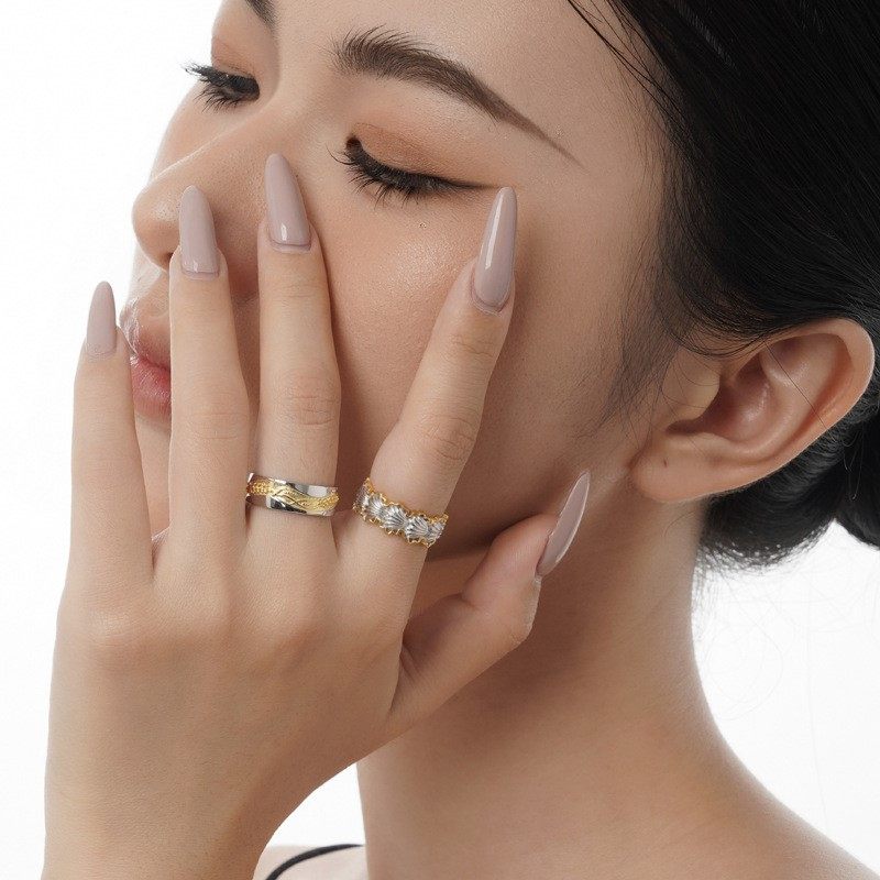 【K社制造】小众设计师款S925纯银贝壳戒指女ins风开口双色食指戒