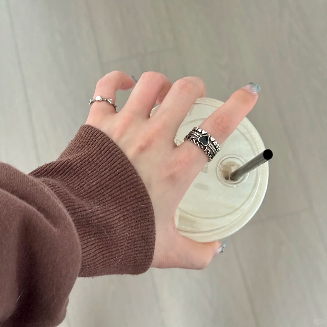 冷淡风镂空爱心环形戒指女开口可调节小众高级感轻奢百搭食指戒潮