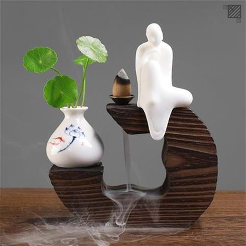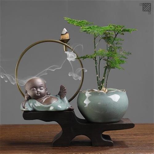 办公桌摆c件男士新中式禅意绿植装饰品客厅书桌面陶瓷玄关摆件