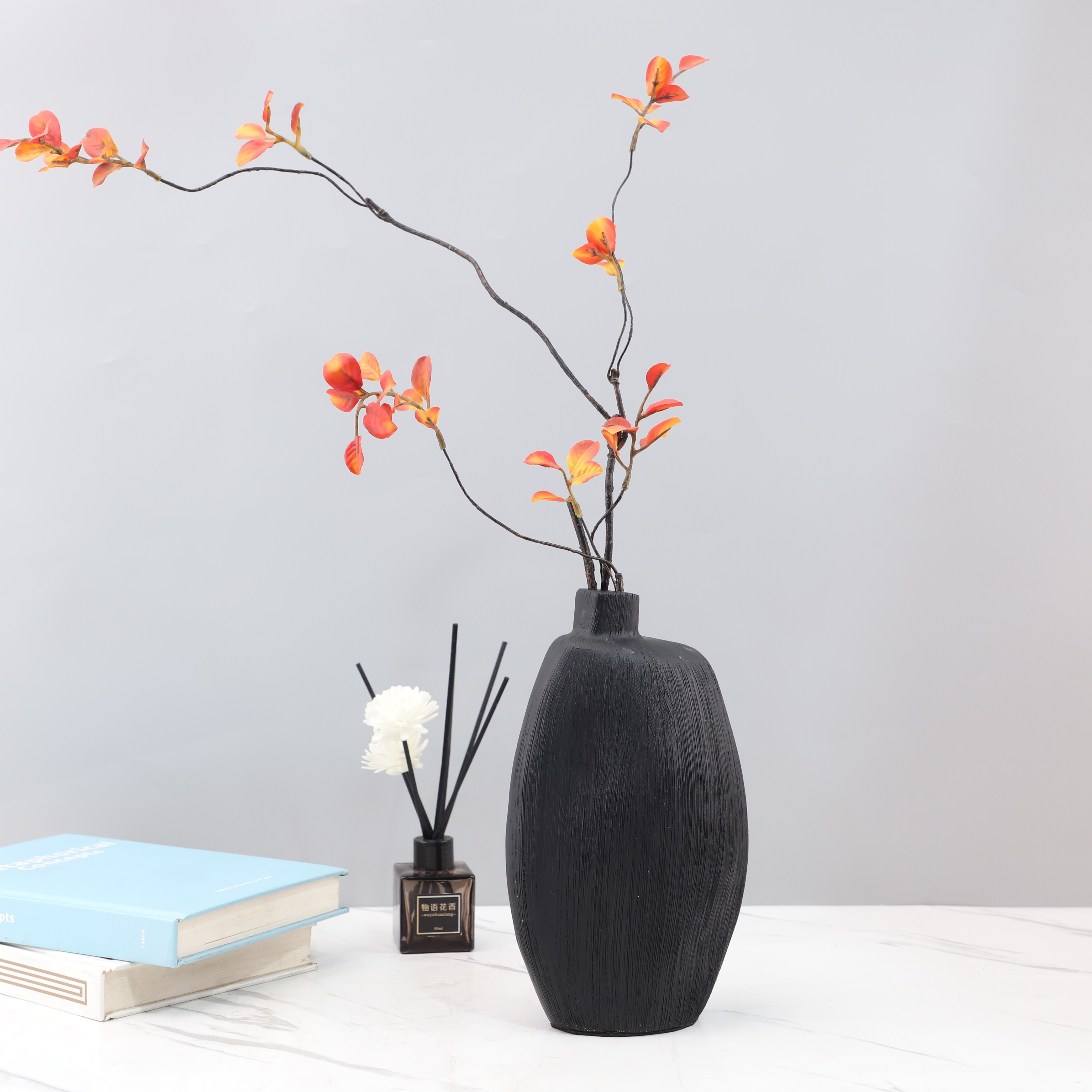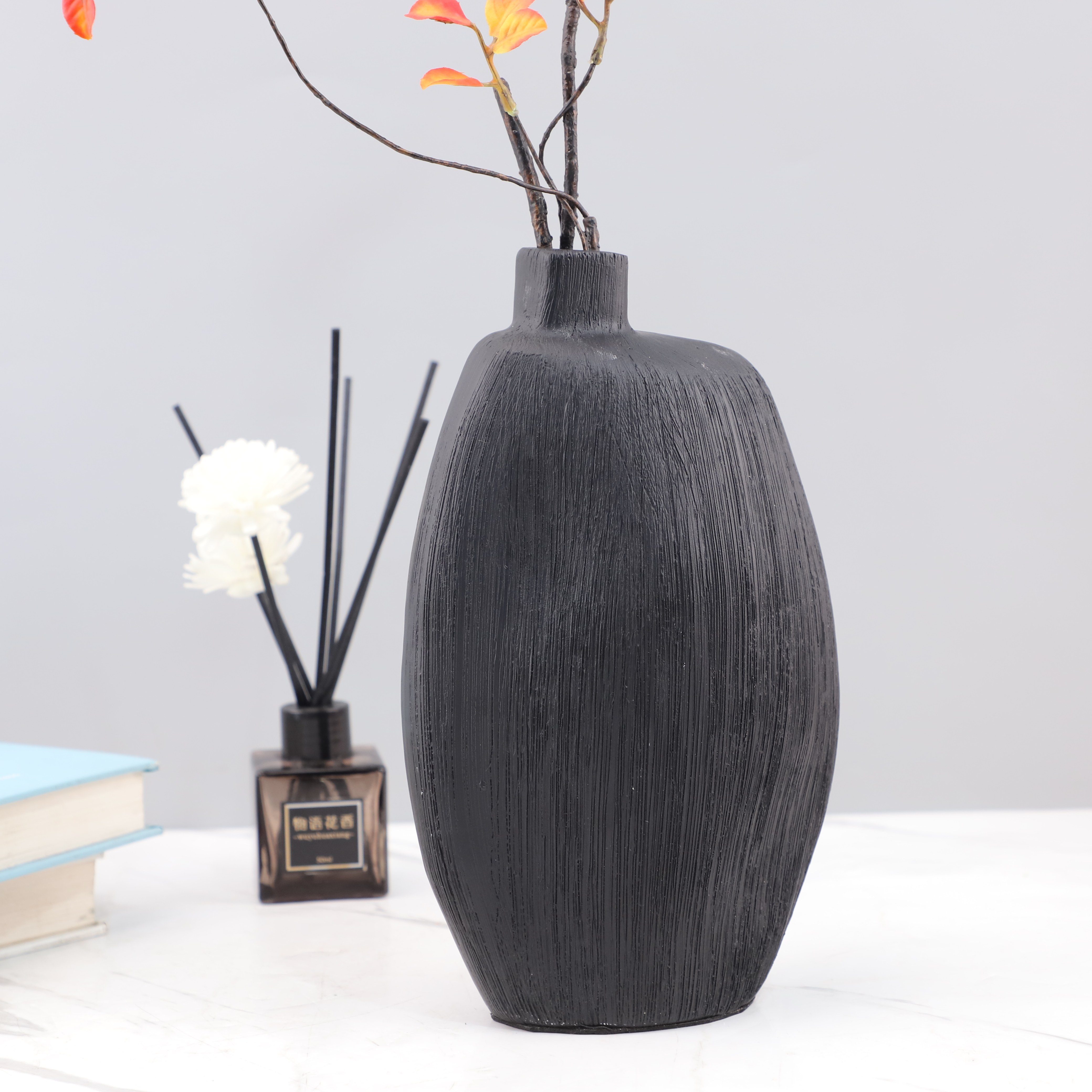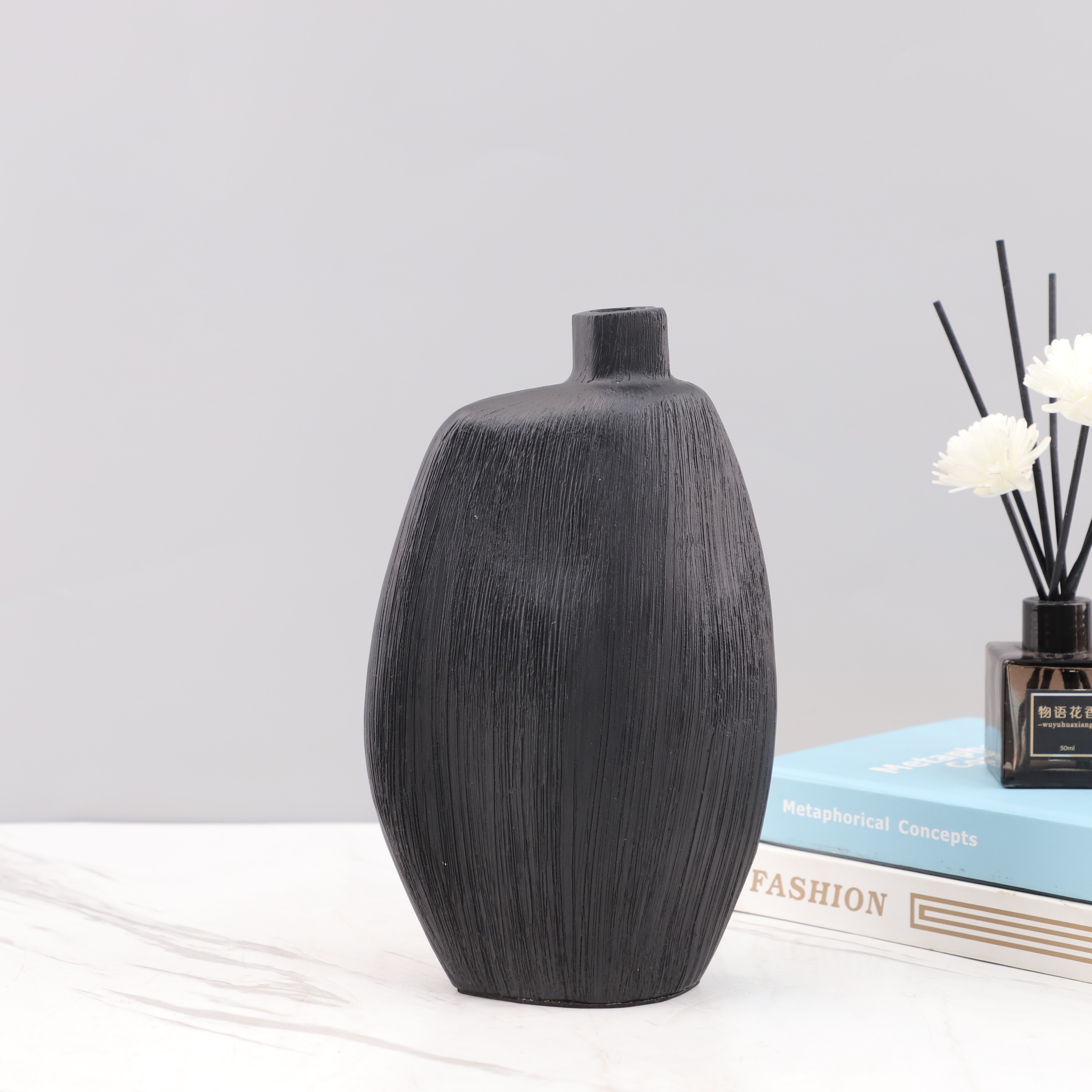 现代轻奢黑色树脂花瓶摆件桌面客厅餐厅酒店玄关样板间家居装饰品