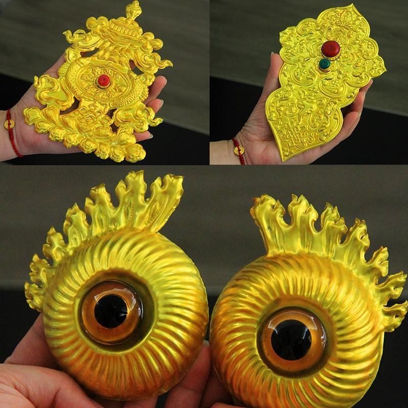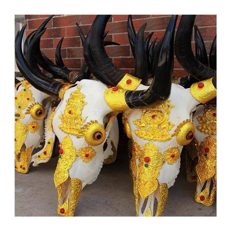 藏饰金色牛头铜片真牛羊头骨工z艺品装饰镶嵌手工包铜动物标本铜