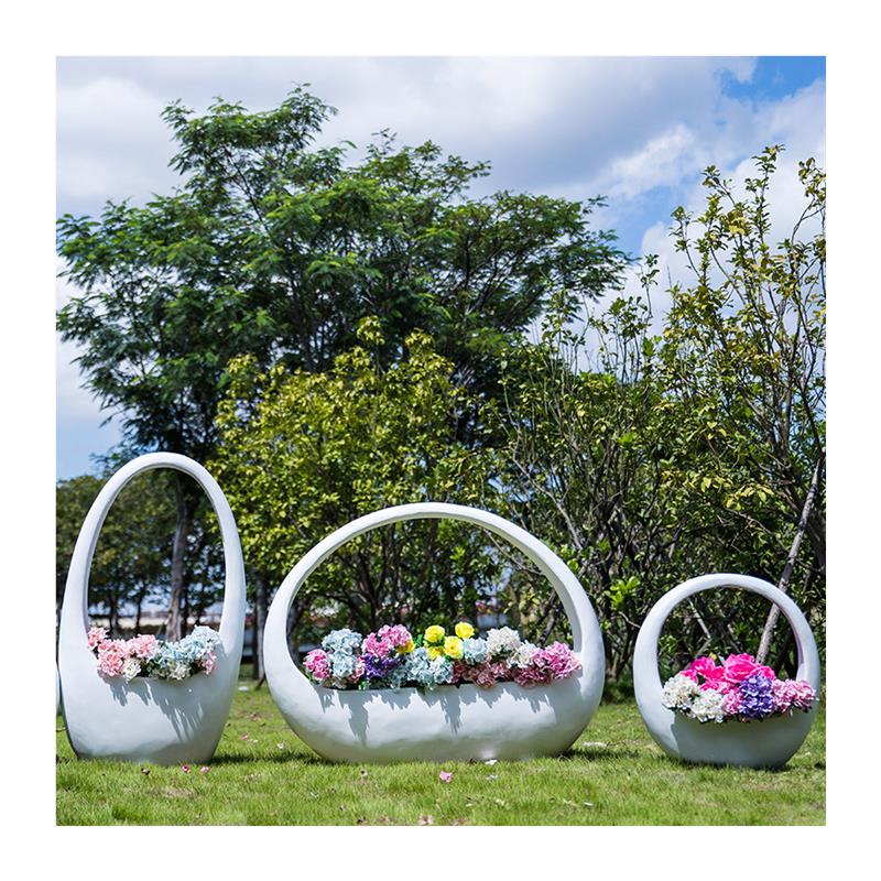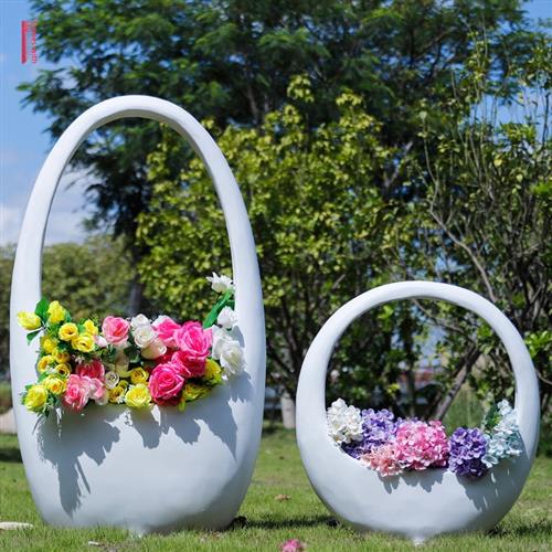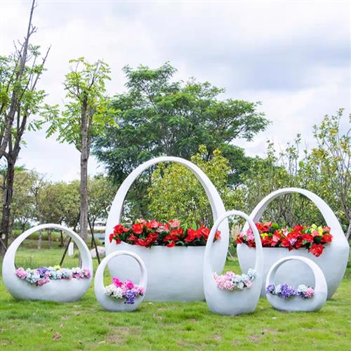 户外简约抽象花篮花盆玻璃钢雕塑花园林景观草坪楼盘美陈装饰摆件
