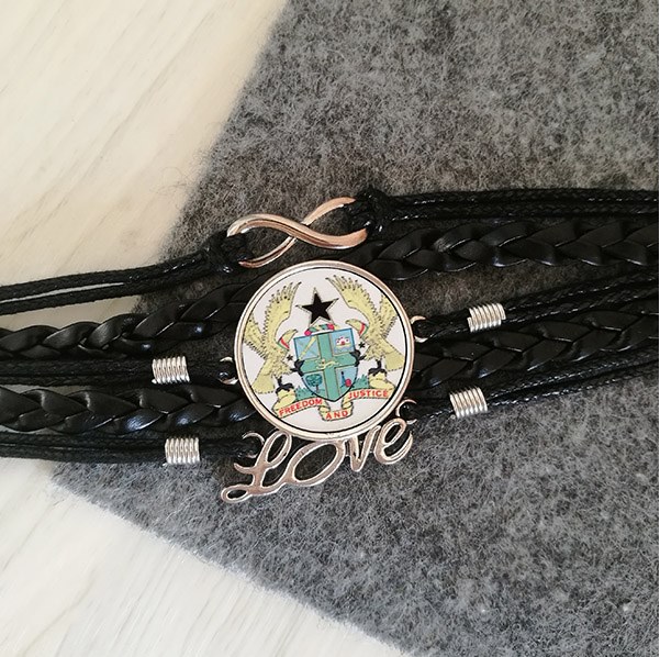 佛得角国旗非洲国家象征符号图案 黑色皮革手链永恒爱礼品礼物