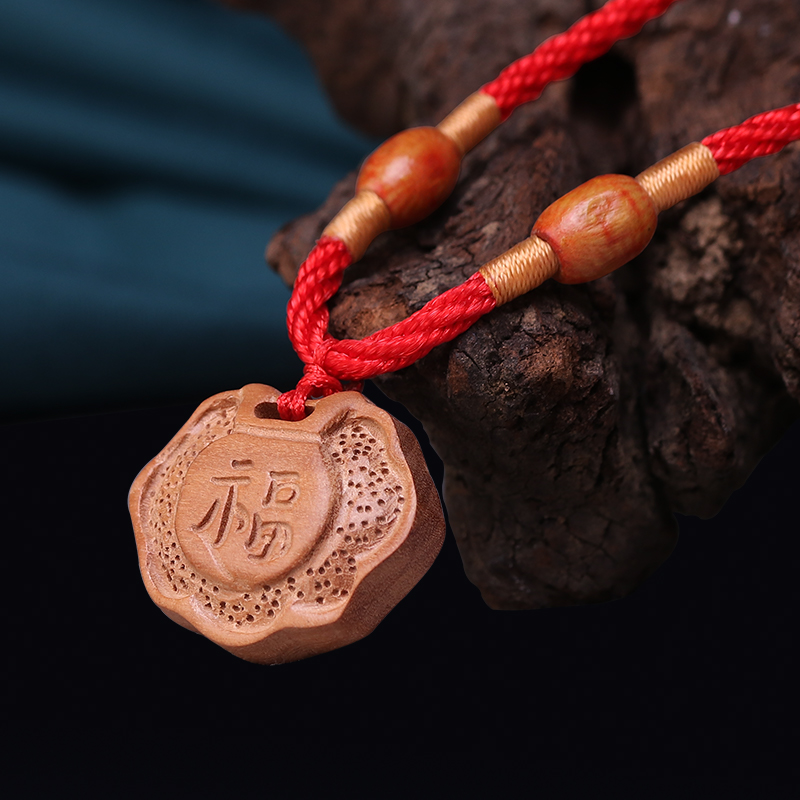 平安锁项链桃木手工雕刻吊坠锁宝宝儿童古风婴儿如意平安福锁