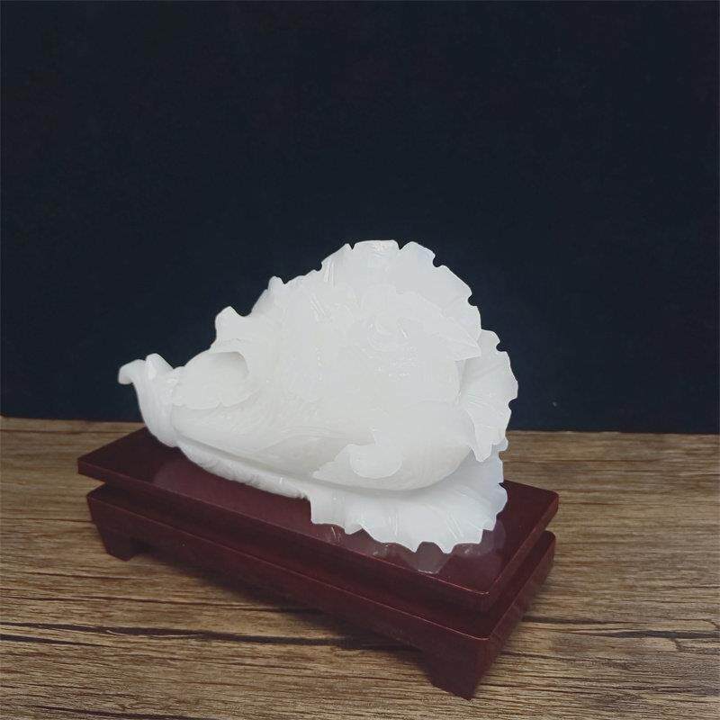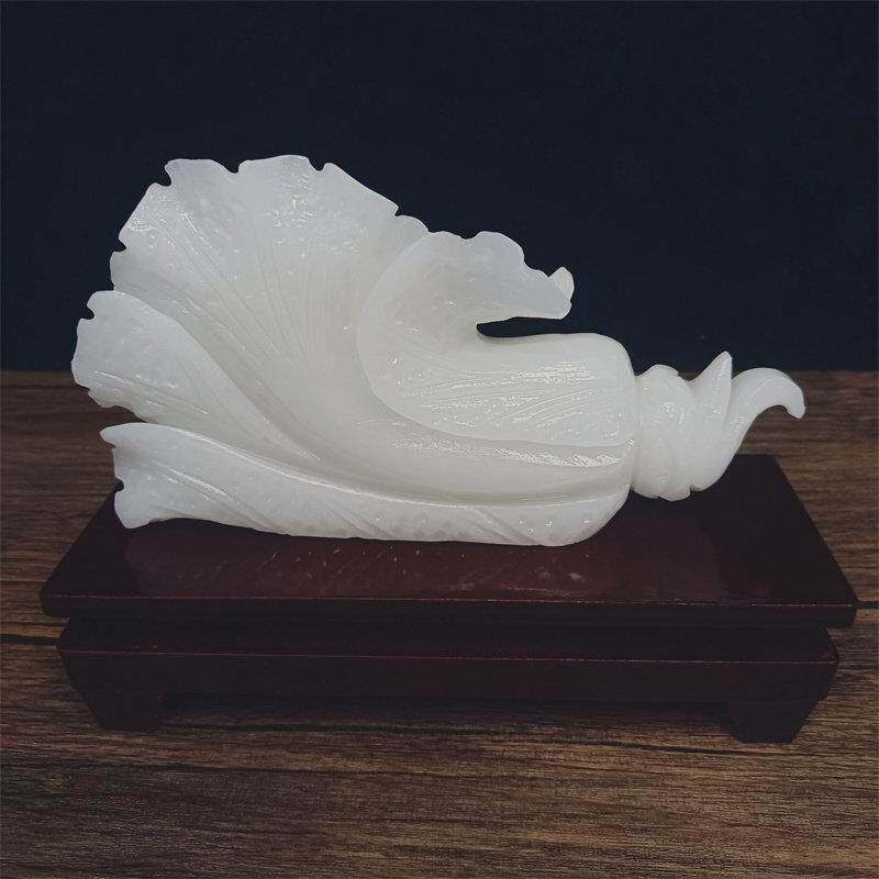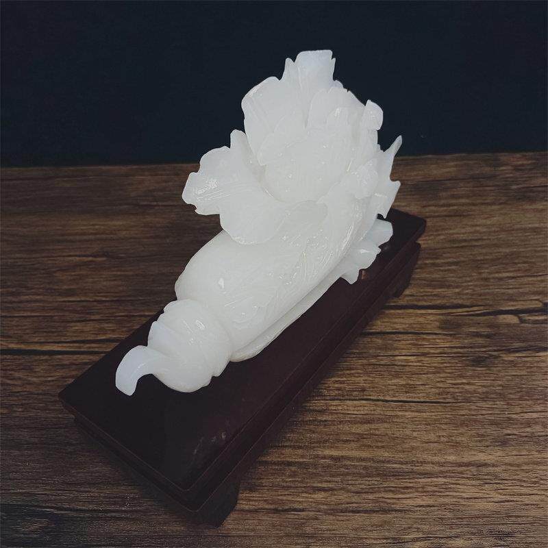 阿富汗白玉白菜摆件纯手工明清古典桌面工艺礼品摆饰实木根雕底座
