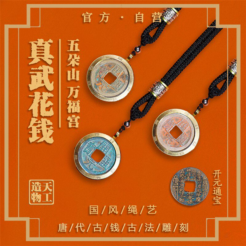 【北顶万福宫】【直发】朱砂山鬼花钱吊坠 开元老钱1对1走流程