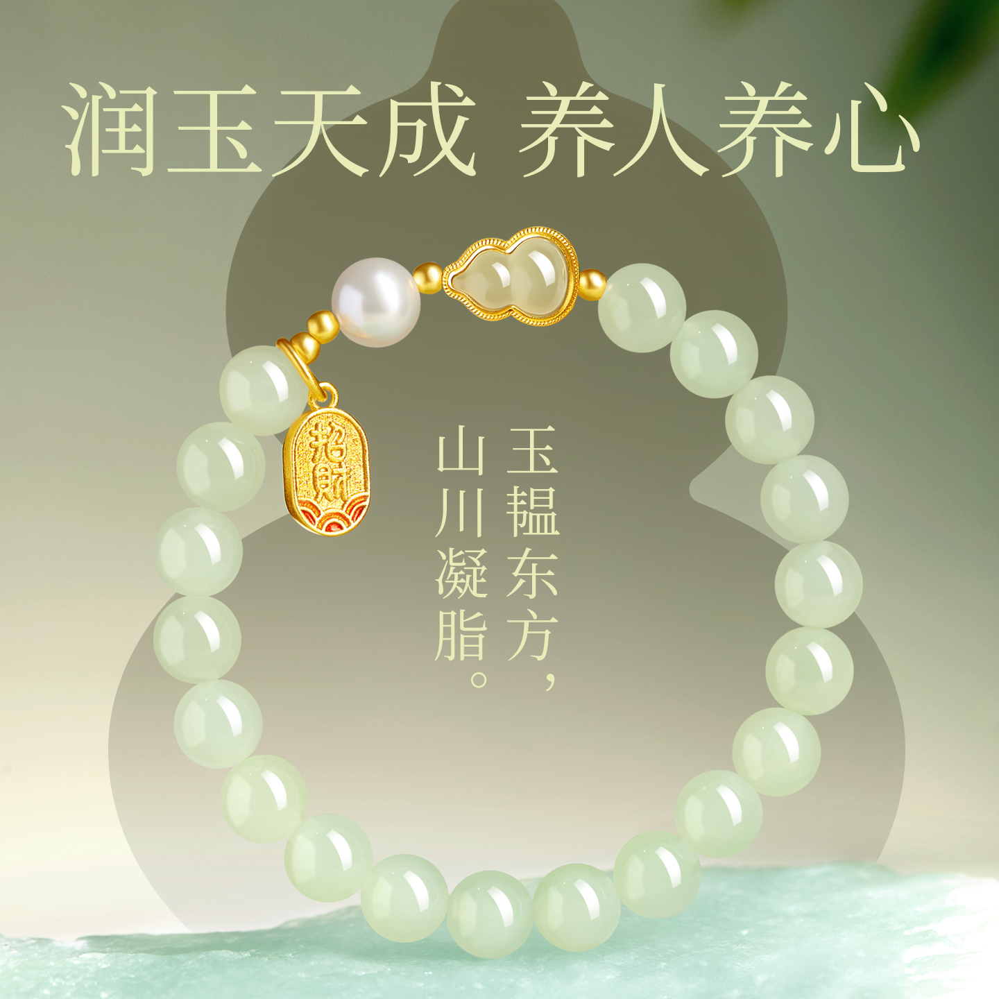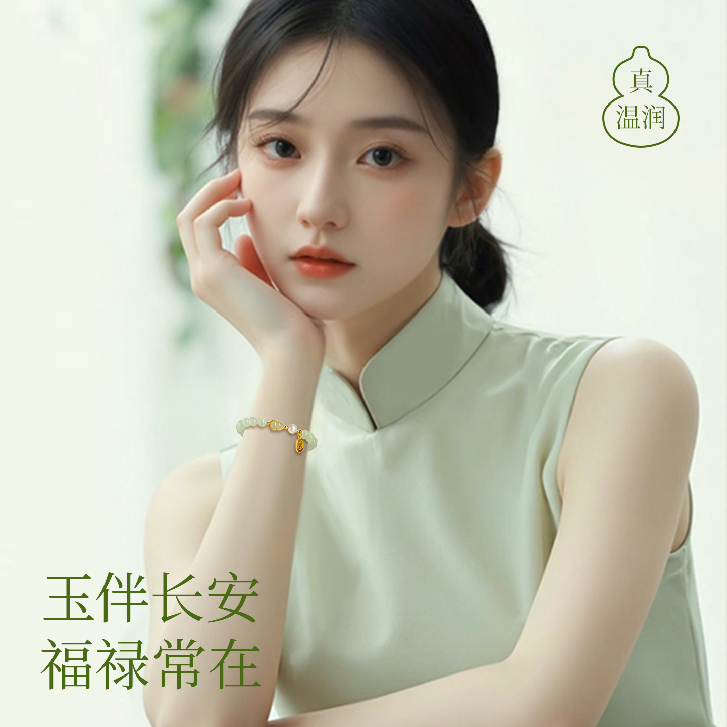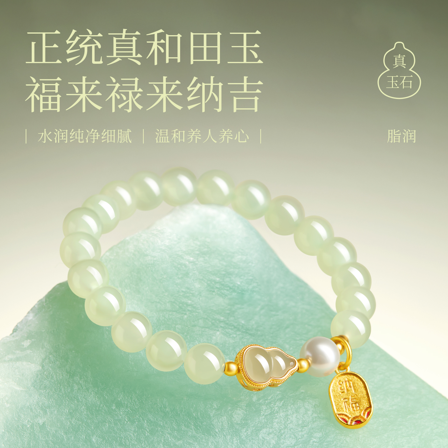天然和田玉手串晴水葫芦手链女款真品官方旗舰店新疆玉石串珠手饰