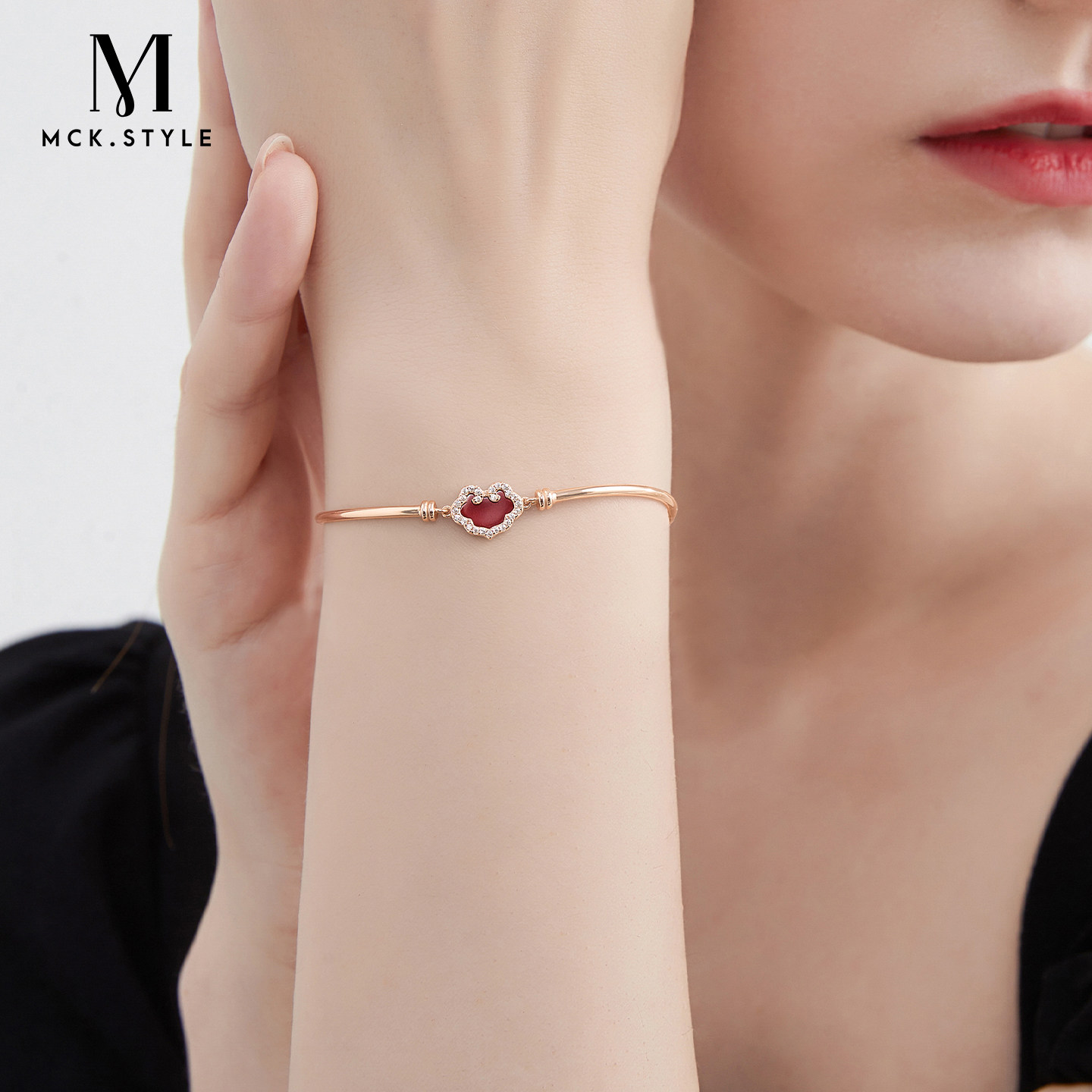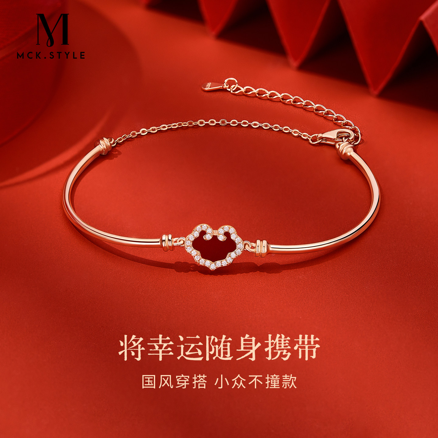 母亲节生日礼物送妈妈送老婆红色玛瑙如意锁手链女国风配饰手镯