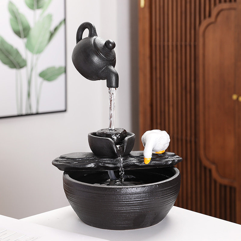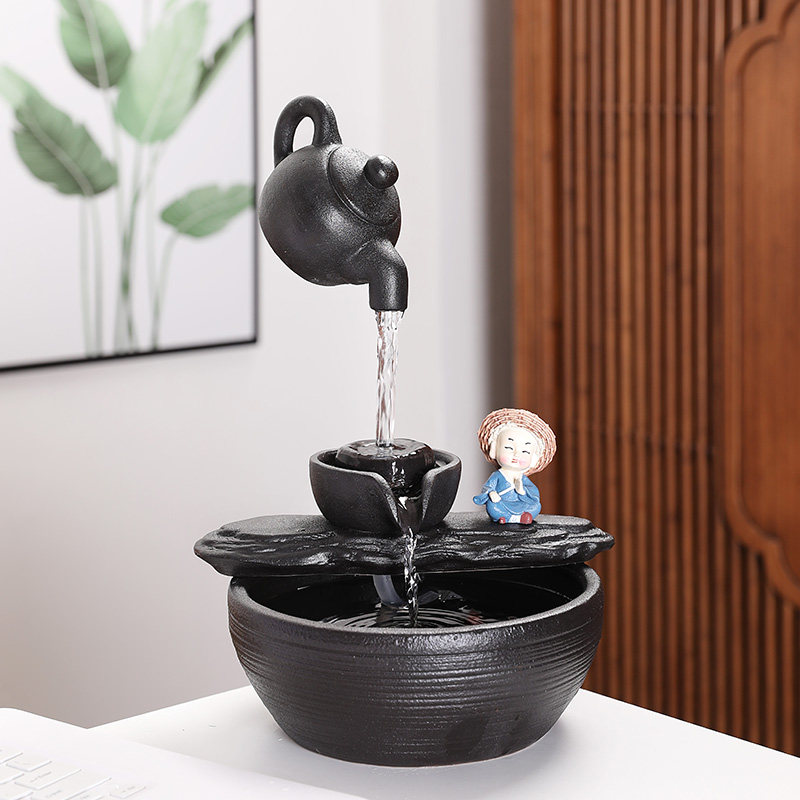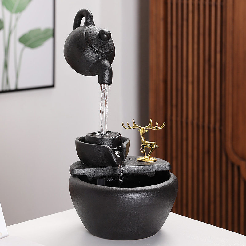 流水摆件中式创意礼品陶瓷循环鱼缸桌面招财生财客厅办公室流水器