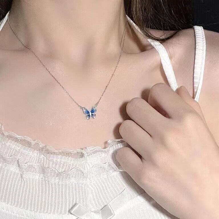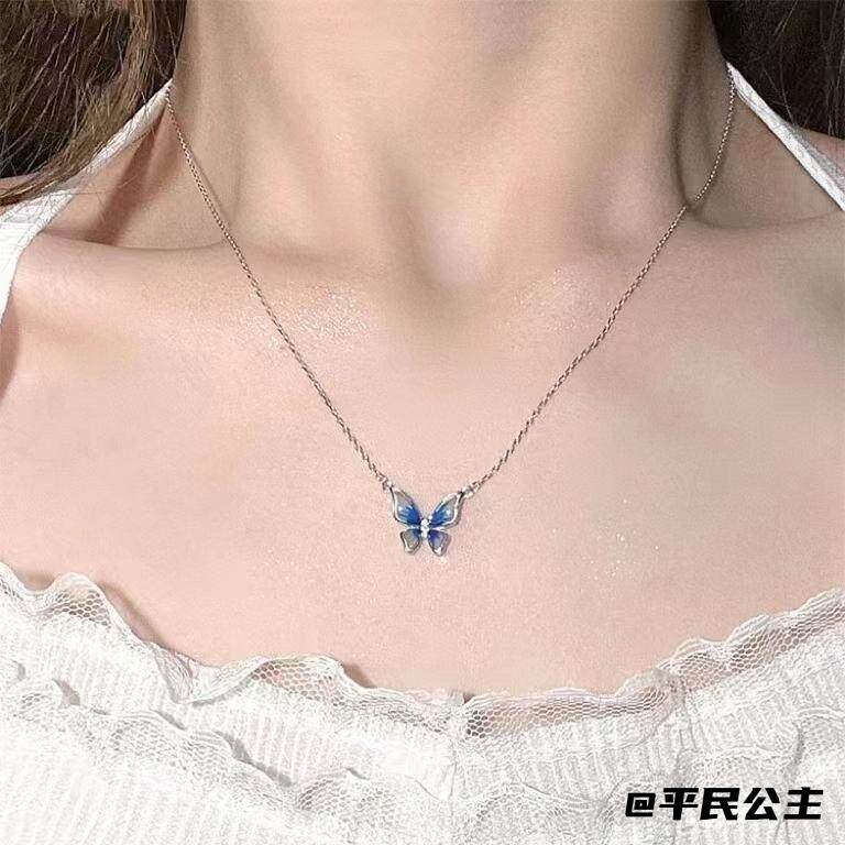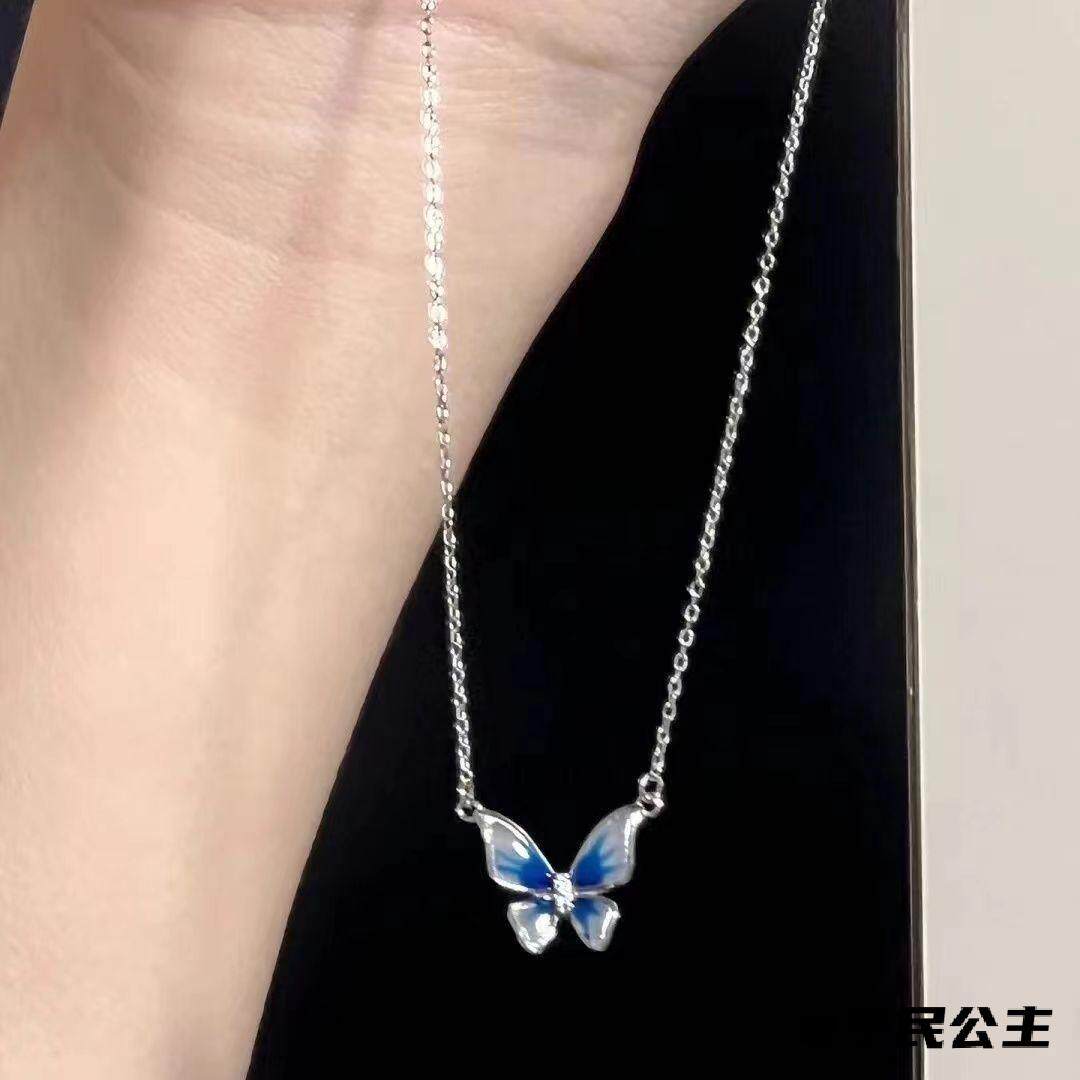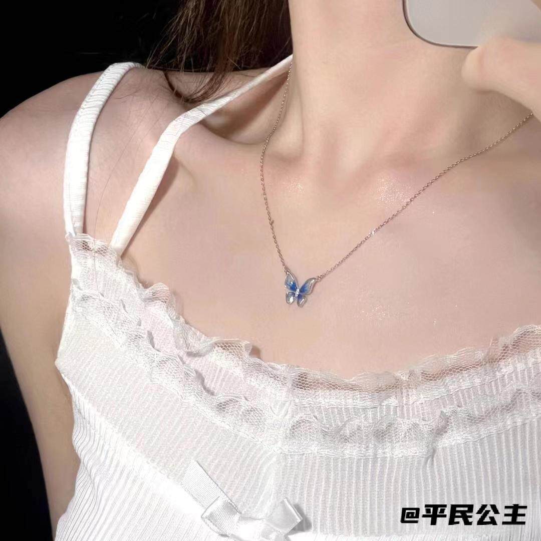 气质高颜值渐变蓝色浪漫甜美辣妹时尚锁骨链百搭蝴蝶项链饰品吊坠