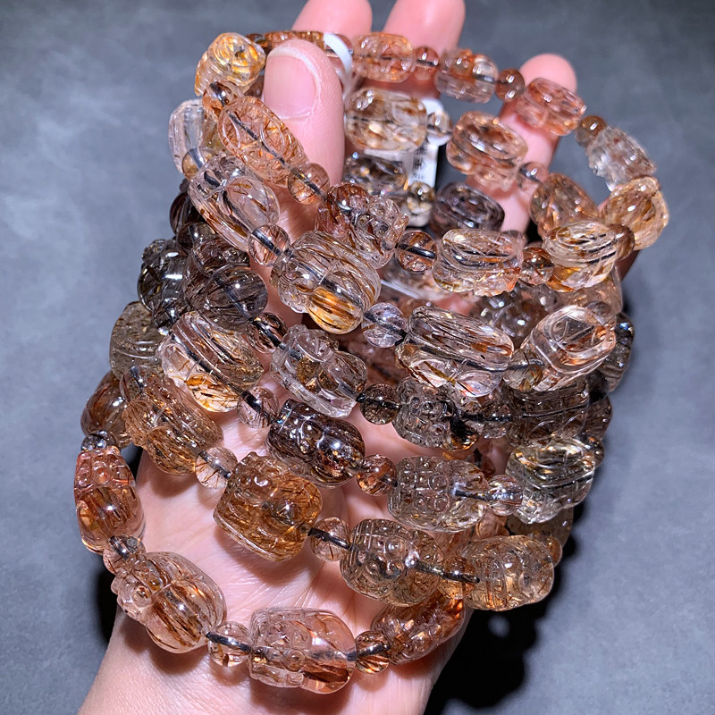 天然黑金超貔貅手串顺发超七共生双轮发晶手链饰品雕刻件一物一图