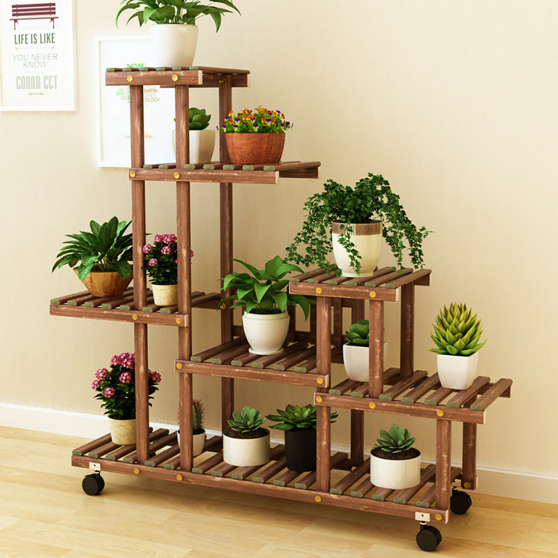阳台花架子室内特价实木客厅落地式多层置物架多肉植物花盆架带轮