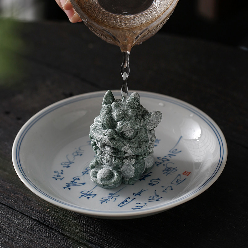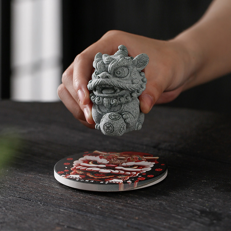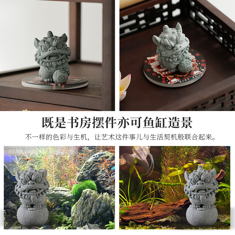 国潮风醒狮青砂石茶宠小摆件鱼缸造景装饰创意招财柿子石狮子瑞兽